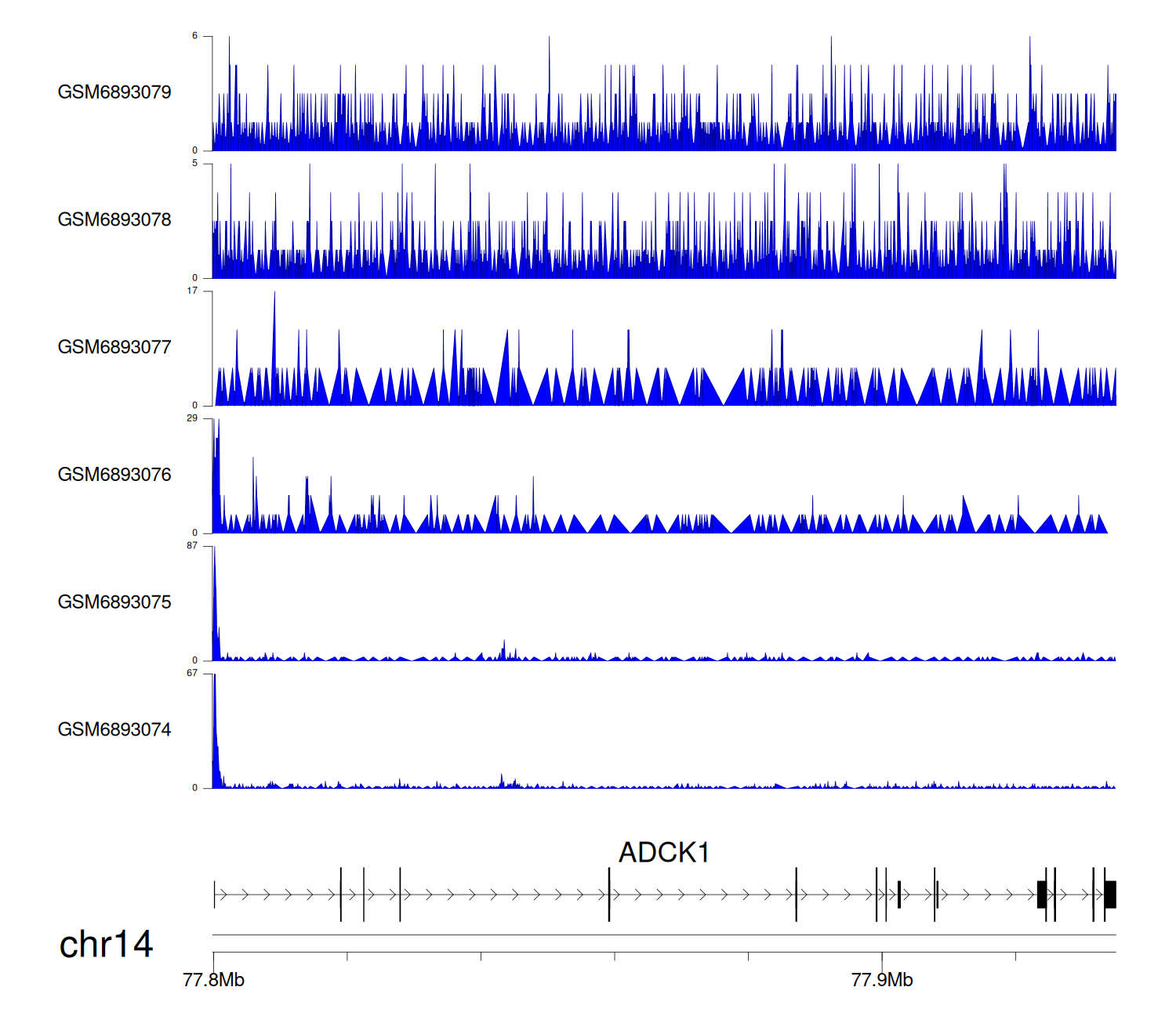 > Dataset: GSE220859 - ADCK1 peak across samples