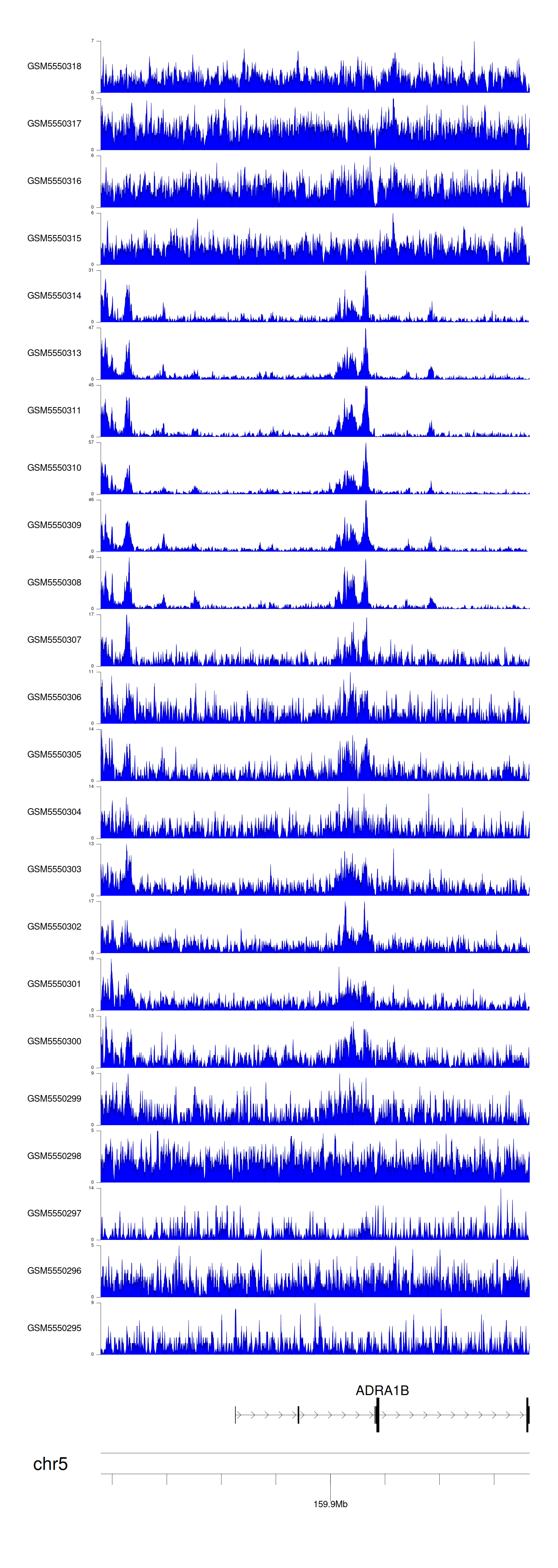 > Dataset: GSE143026 - ADRA1B peak across samples