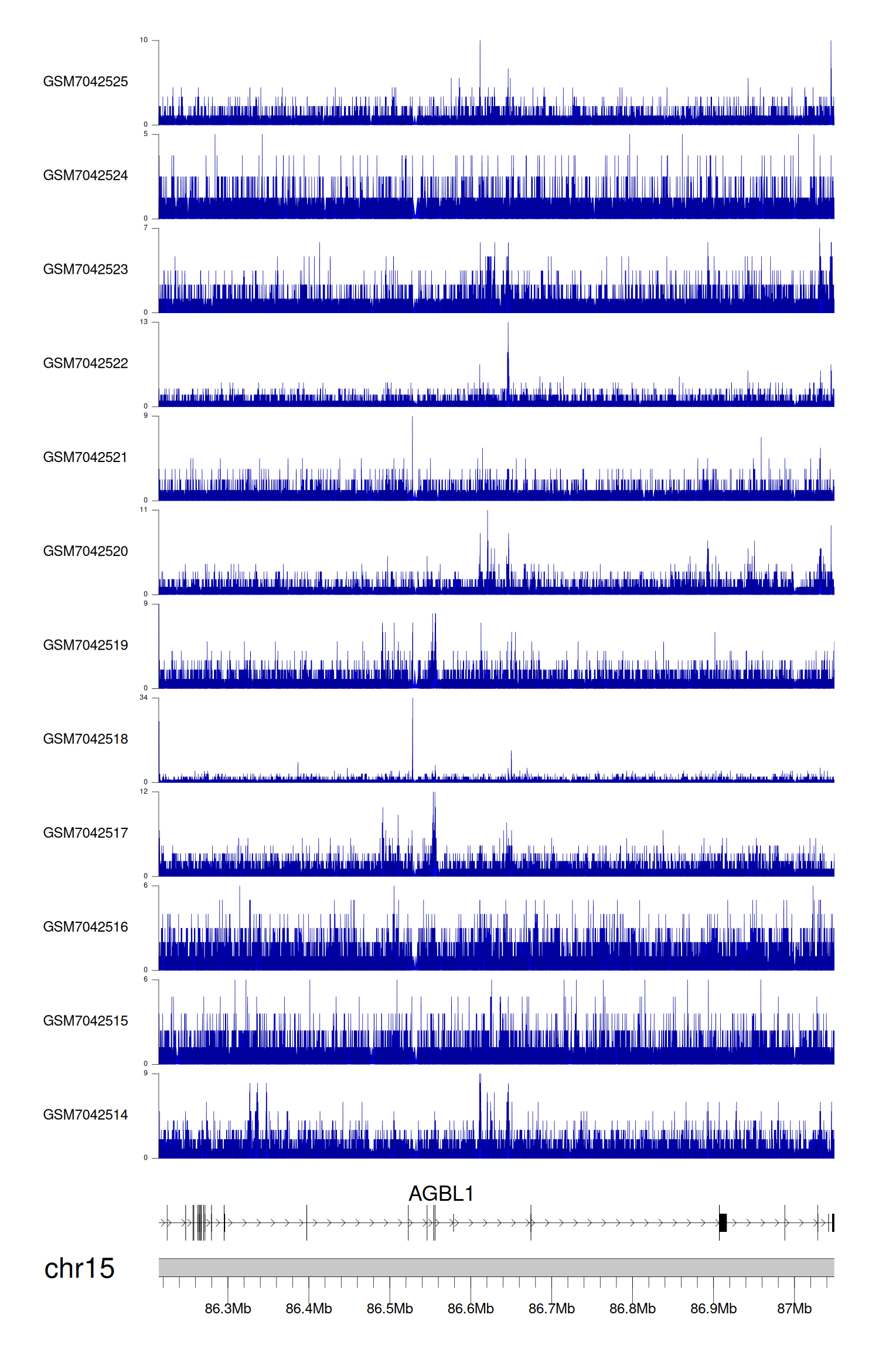 > Dataset: GSE225248 - AGBL1 peak across samples