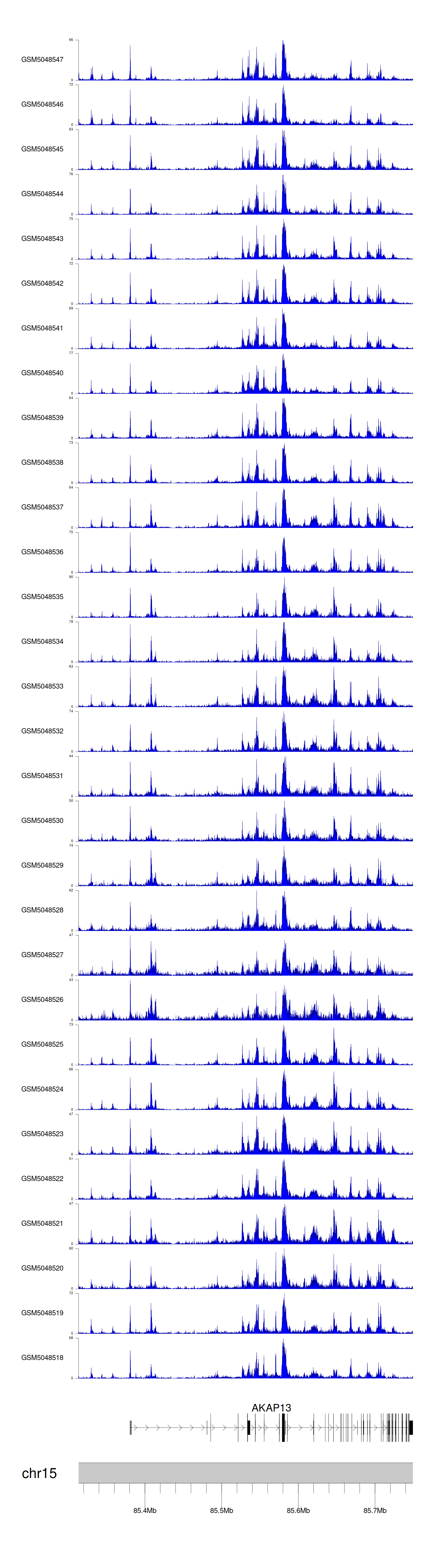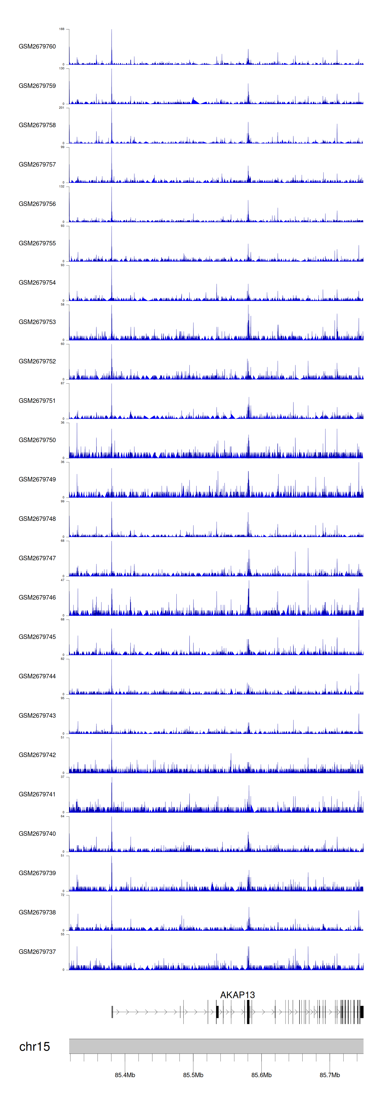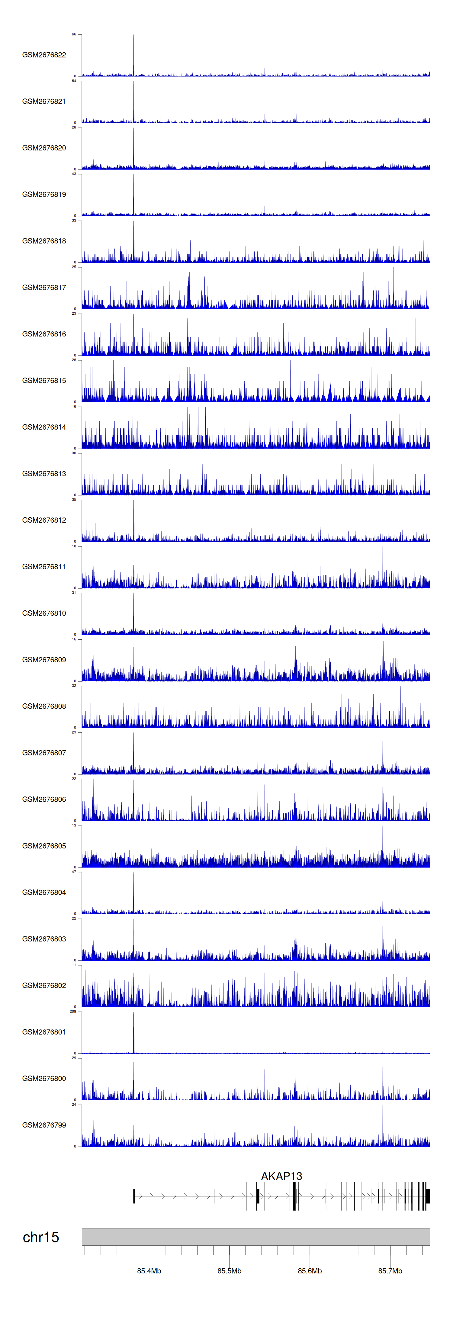 > Dataset: GSE100376 - AKAP13 peak across samples
