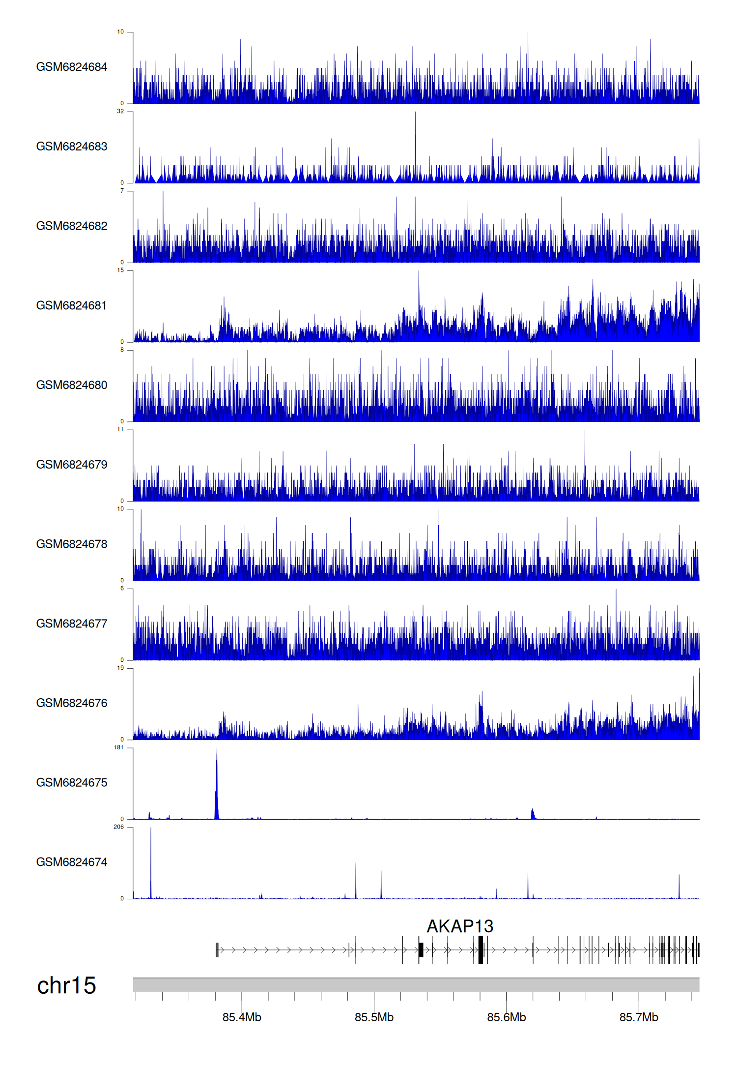 > Dataset: GSE144329 - AKAP13 peak across samples