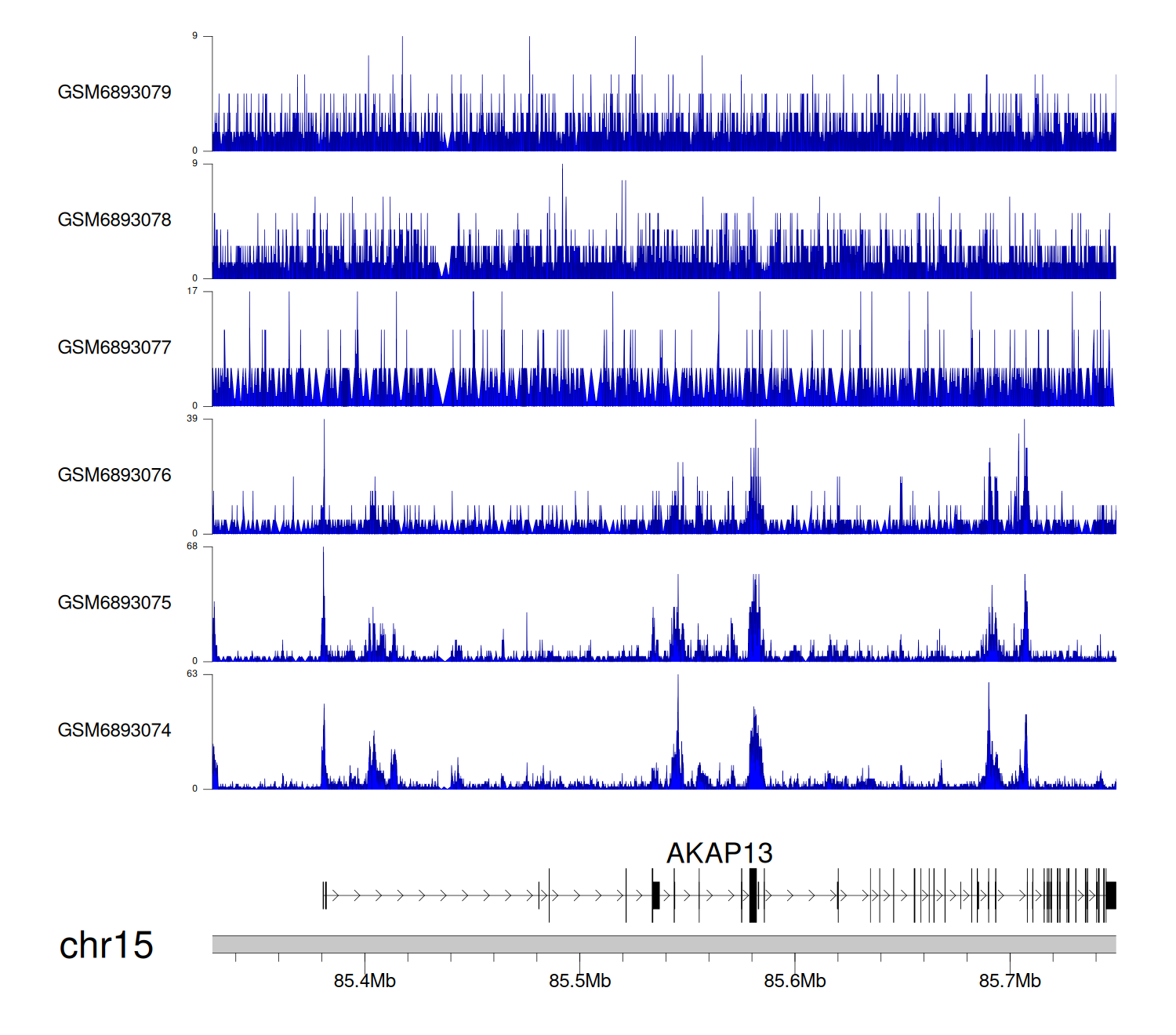 > Dataset: GSE211651 - AKAP13 peak across samples