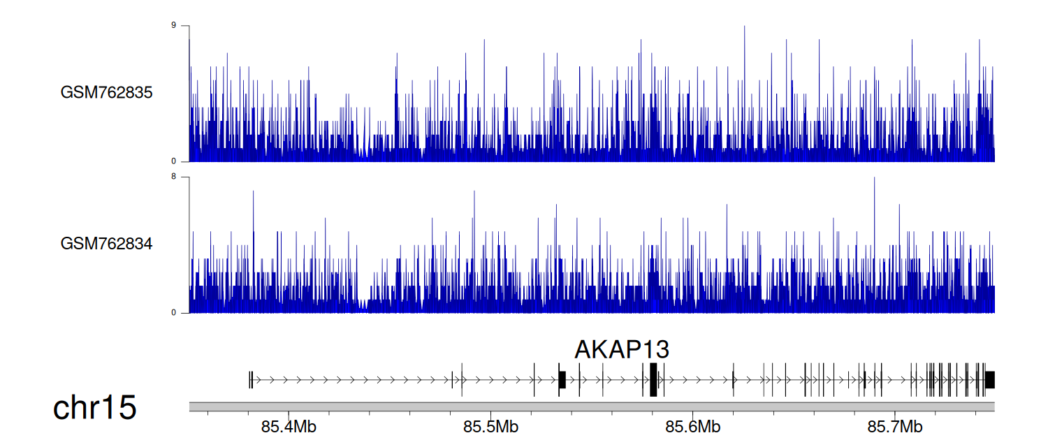 > Dataset: GSE30738 - AKAP13 peak across samples