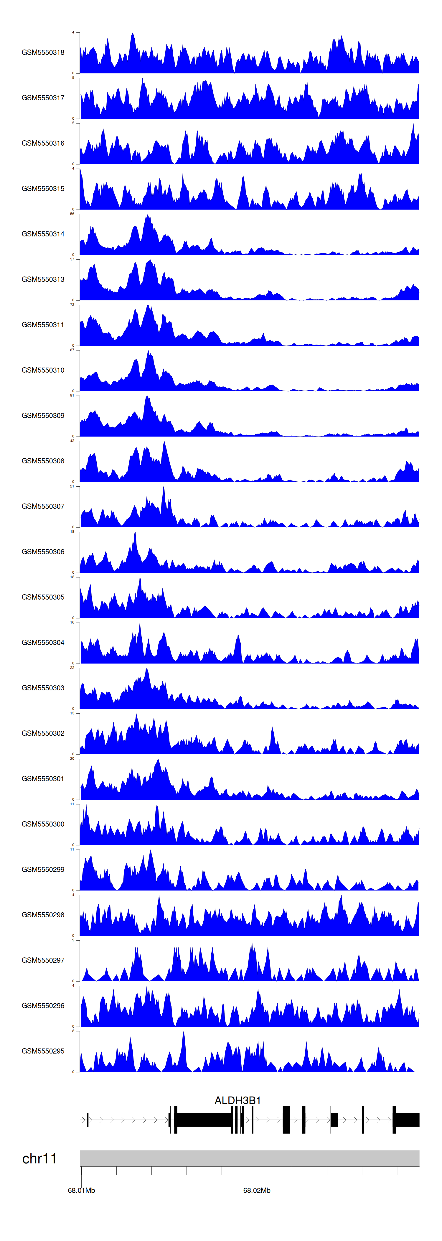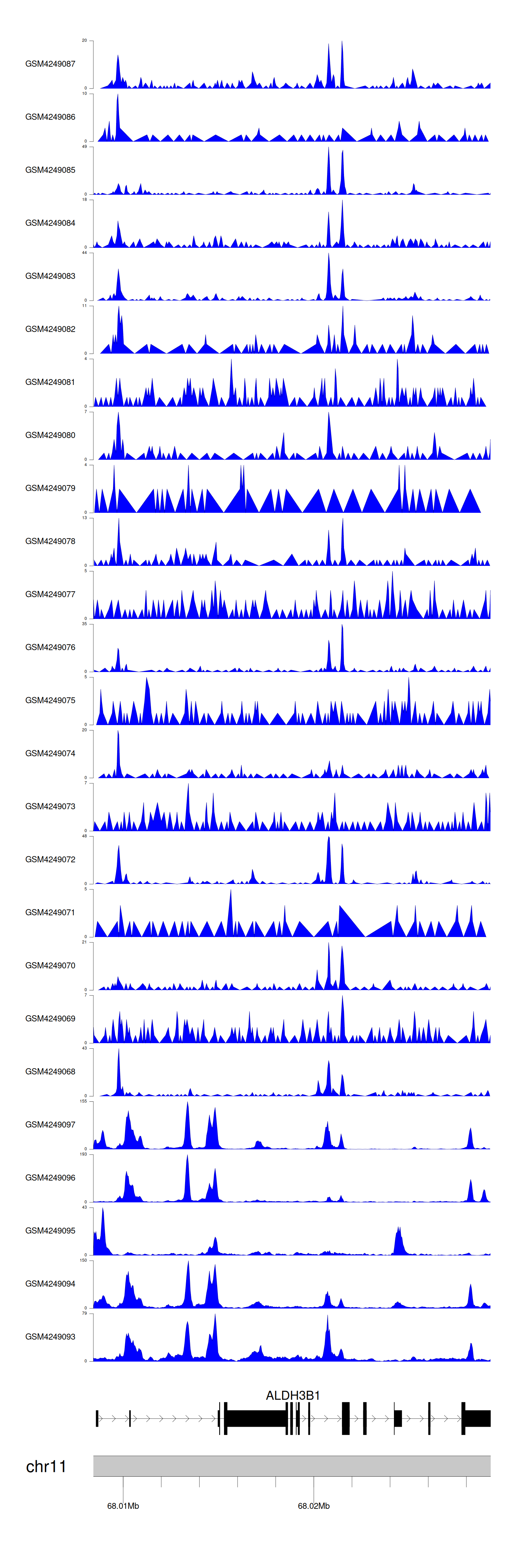 > Dataset: GSE143026 - ALDH3B1 peak across samples