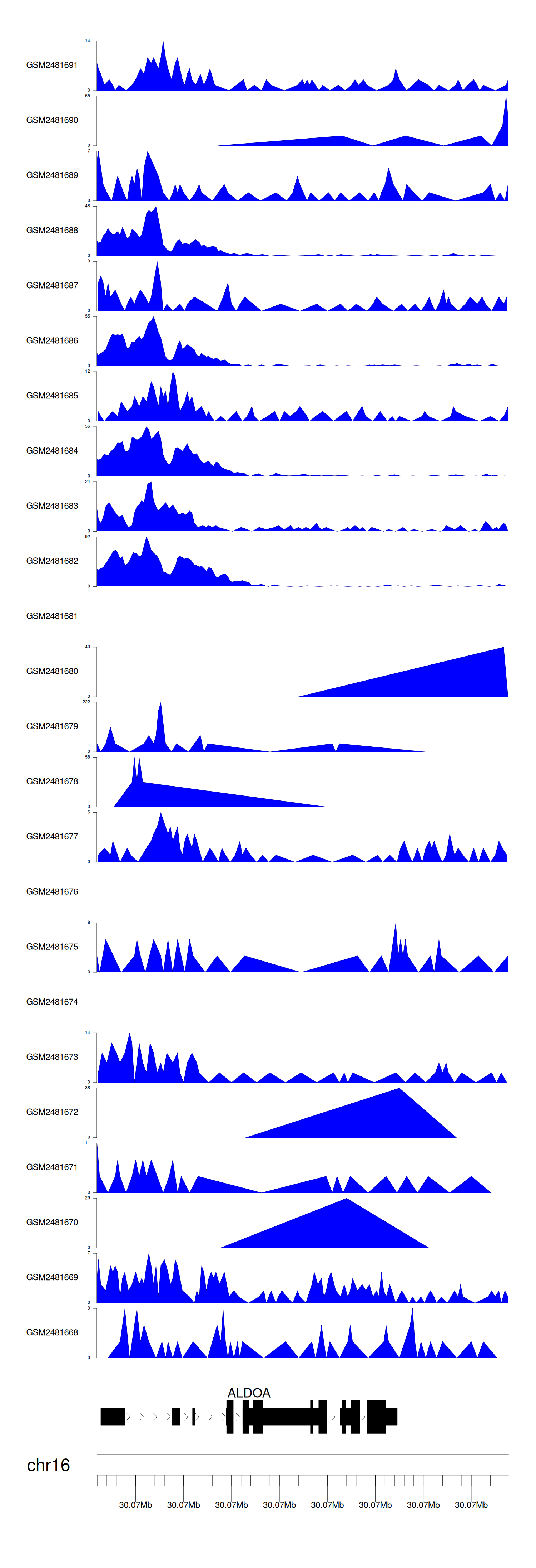 This gene encodes a member of the class I fructose-bisphosphate aldolase protein family. The encoded protein is a glycolytic enzyme that catalyzes the reversible conversion of fructose-1,6-bisphosphate to glyceraldehyde 3-phosphate and dihydroxyacetone phosphate. Three aldolase isozymes (A, B, and C), encoded by three different genes, are differentially expressed during development. Mutations in this gene have been associated with Glycogen Storage Disease XII, an autosomal recessive disorder associated with hemolytic anemia. Disruption of this gene also plays a role in the progression of multiple types of cancers. Related pseudogenes have been identified on chromosomes 3 and 10. [provided by RefSeq, Sep 2017] |