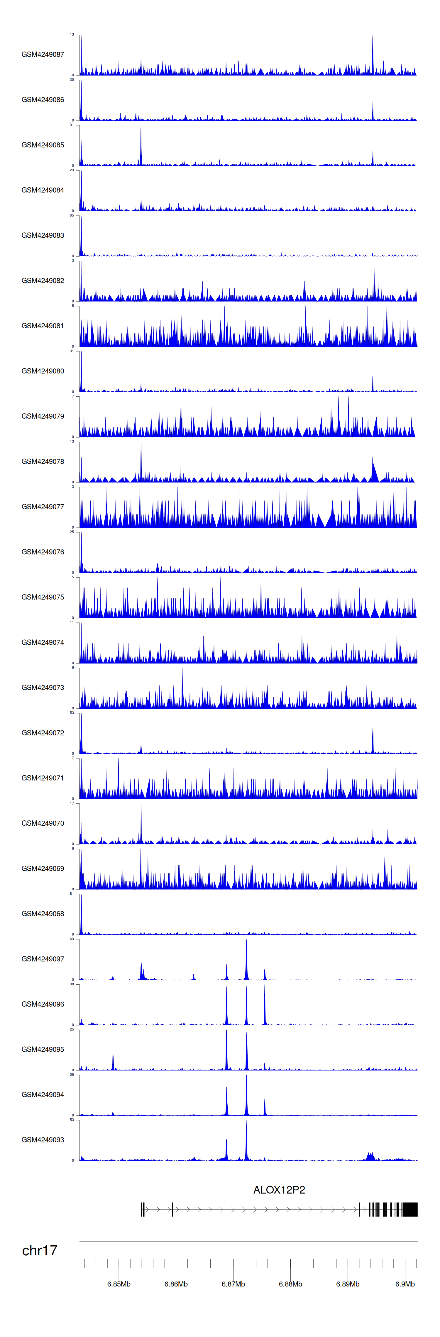 > Dataset: GSE143026 - ALOX12P2 peak across samples