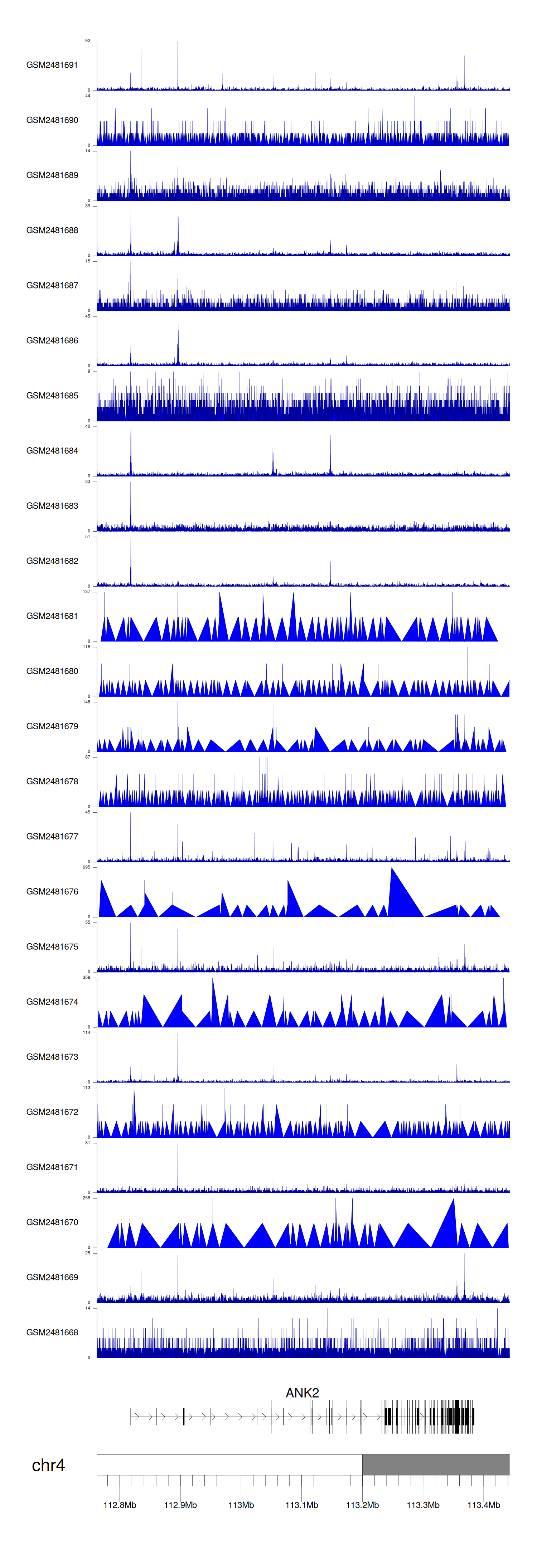 > Dataset: GSE94732 - ANK2 peak across samples