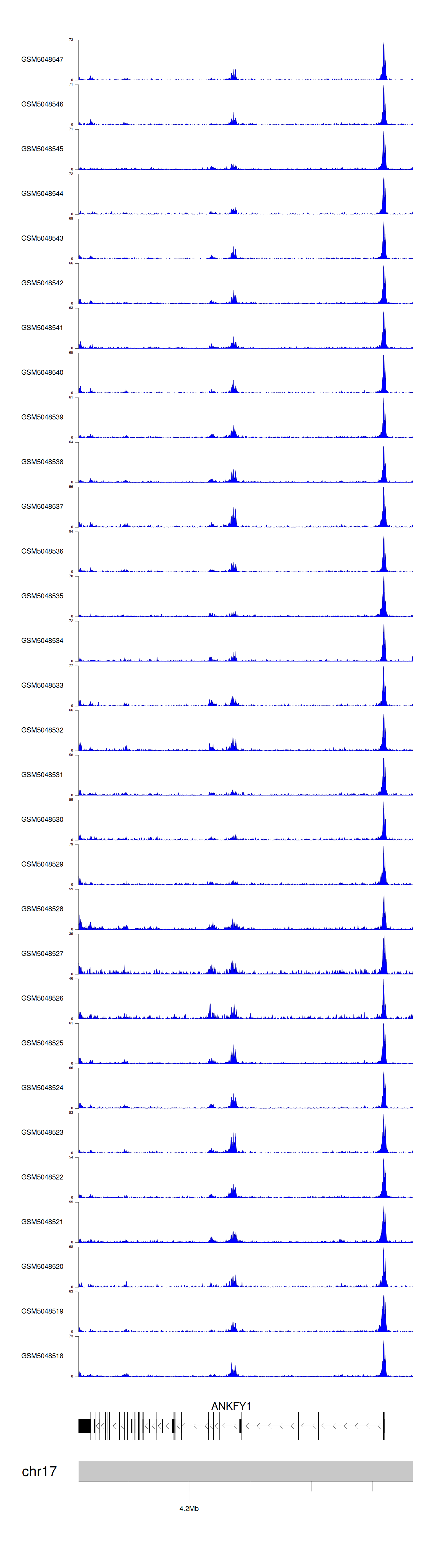 > Dataset: GSE30738 - ANKFY1 peak across samples