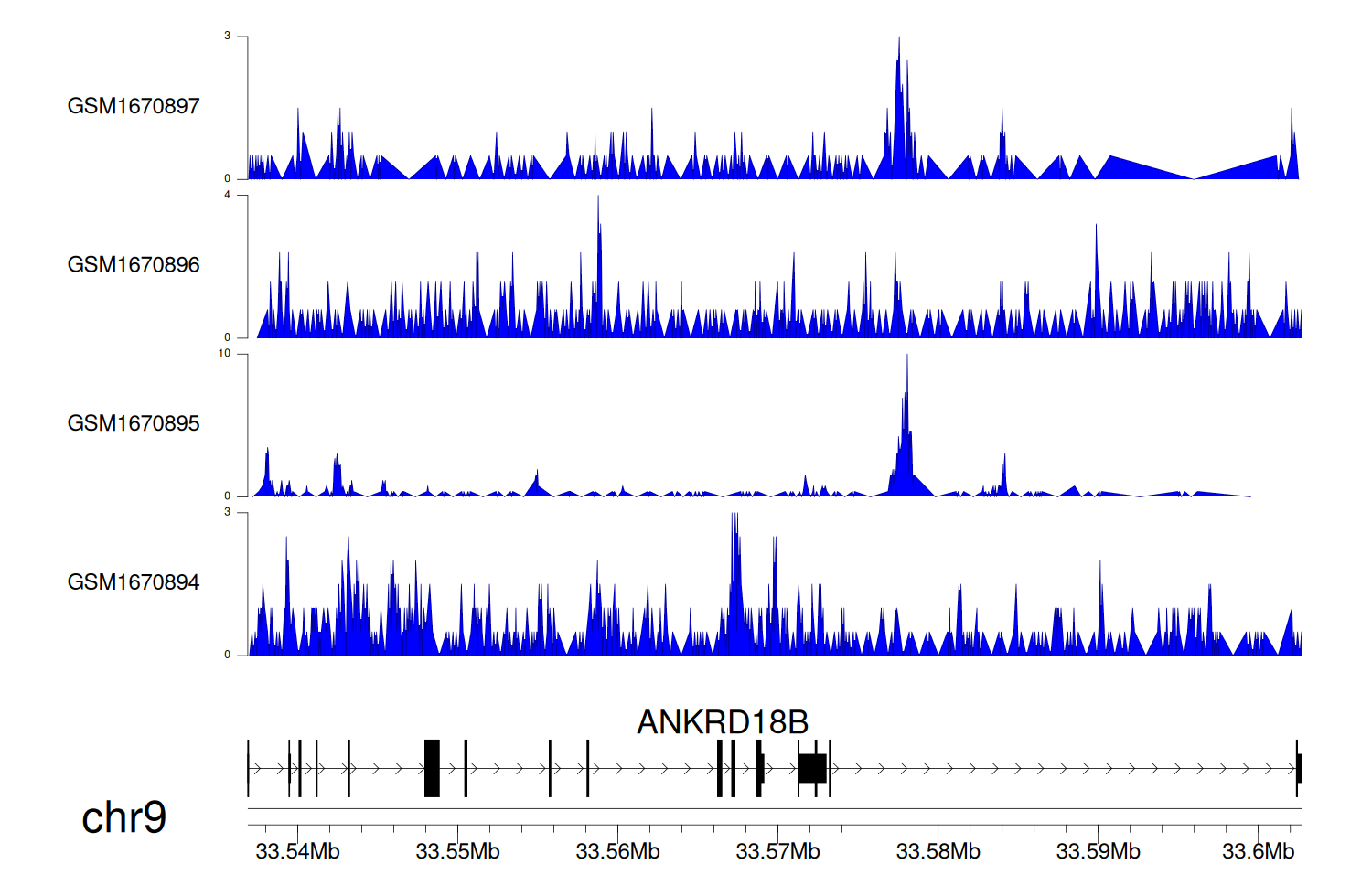 > Dataset: GSE68402 - ANKRD18B peak across samples