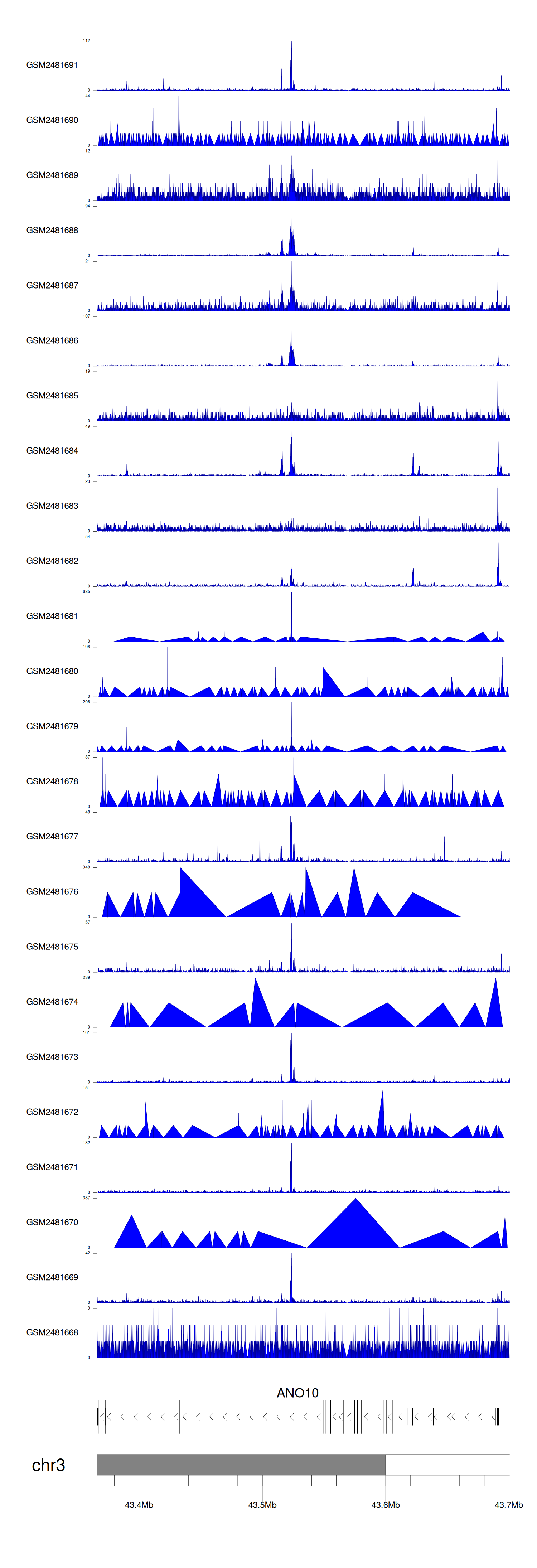 The transmembrane protein encoded by this gene belongs to the anoctamin family of calcium-activated chloride channels, also known as the transmembrane 16 family. The encoded protein contains eight transmembrane domains with cytosolic N- and C-termini. Defects in this gene may cause autosomal recessive spinocerebellar ataxia-10. Alternative splicing results in multiple transcript variants. [provided by RefSeq, Oct 2016] |