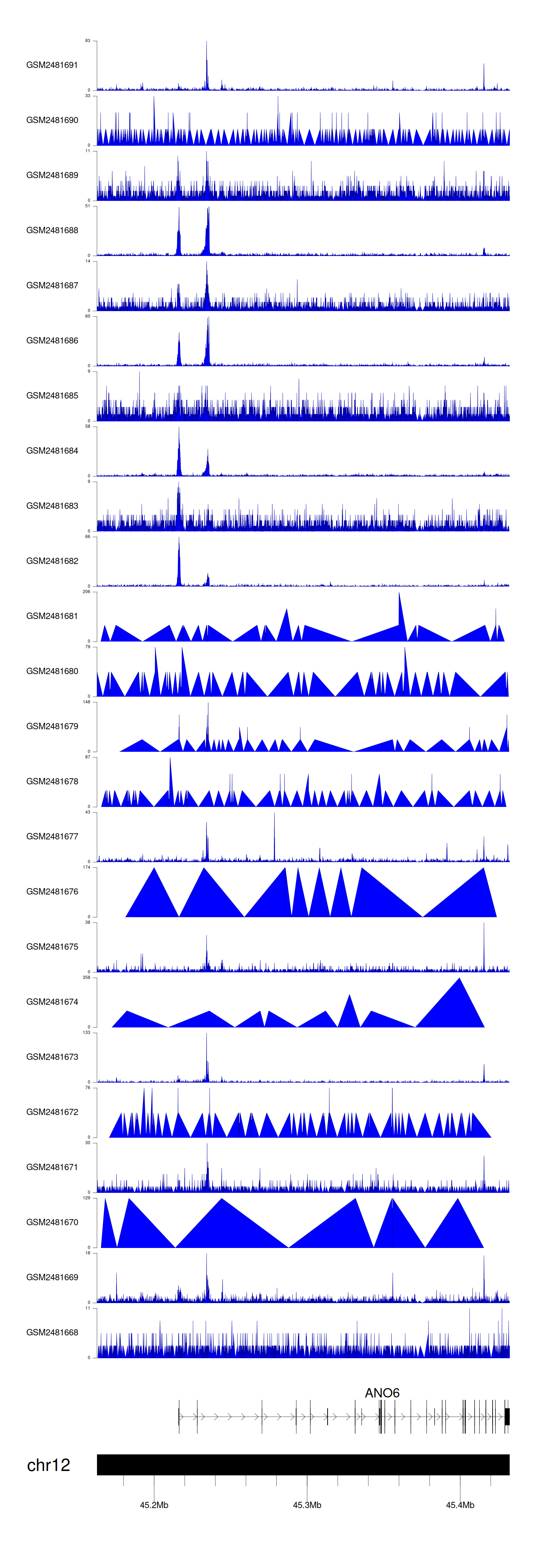 This gene encodes a multi-pass transmembrane protein that belongs to the anoctamin family. This protein is an essential component for the calcium-dependent exposure of phosphatidylserine on the cell surface. The scrambling of phospholipid occurs in various biological systems, such as when blood platelets are activated, they expose phosphatidylserine to trigger the clotting system. Mutations in this gene are associated with Scott syndrome. Alternatively spliced transcript variants encoding different isoforms have been found for this gene.[provided by RefSeq, Mar 2011] |
