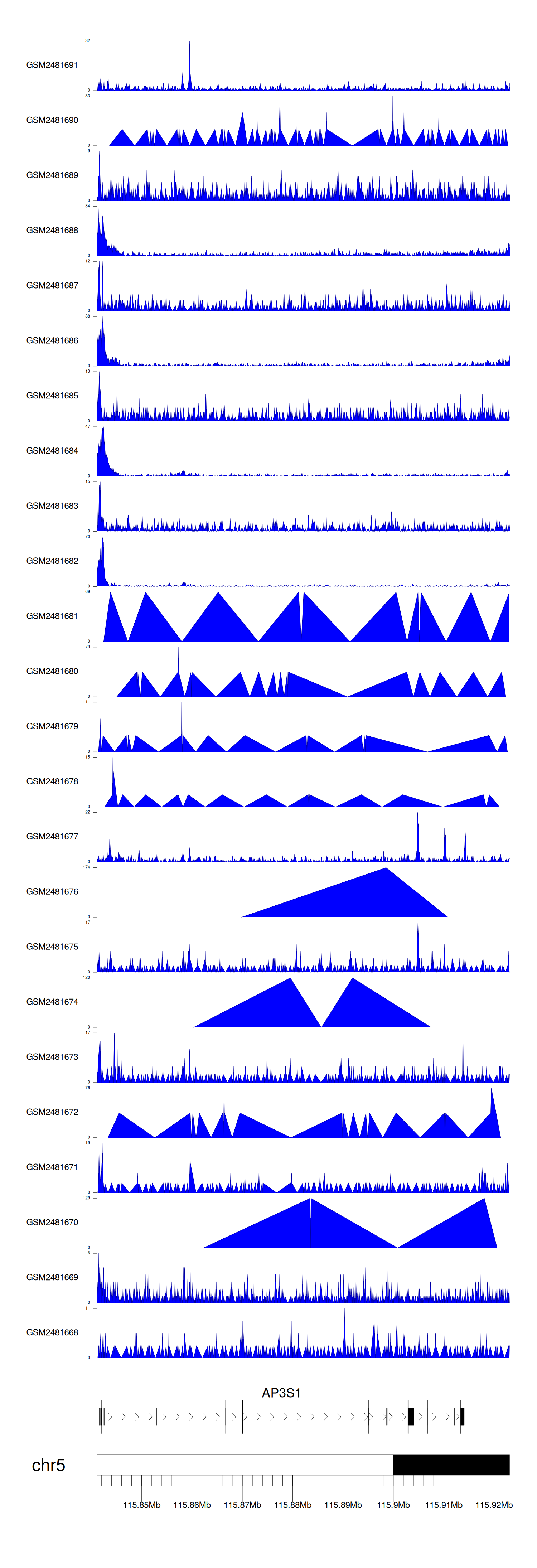 > Dataset: GSE94732 - AP3S1 peak across samples