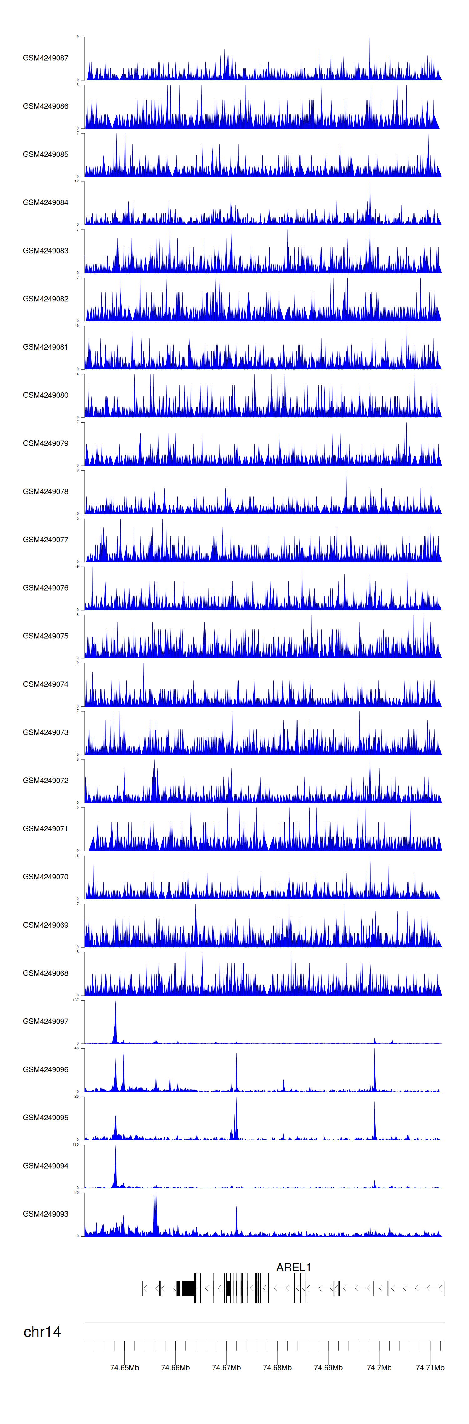 > Dataset: GSE143026 - AREL1 peak across samples