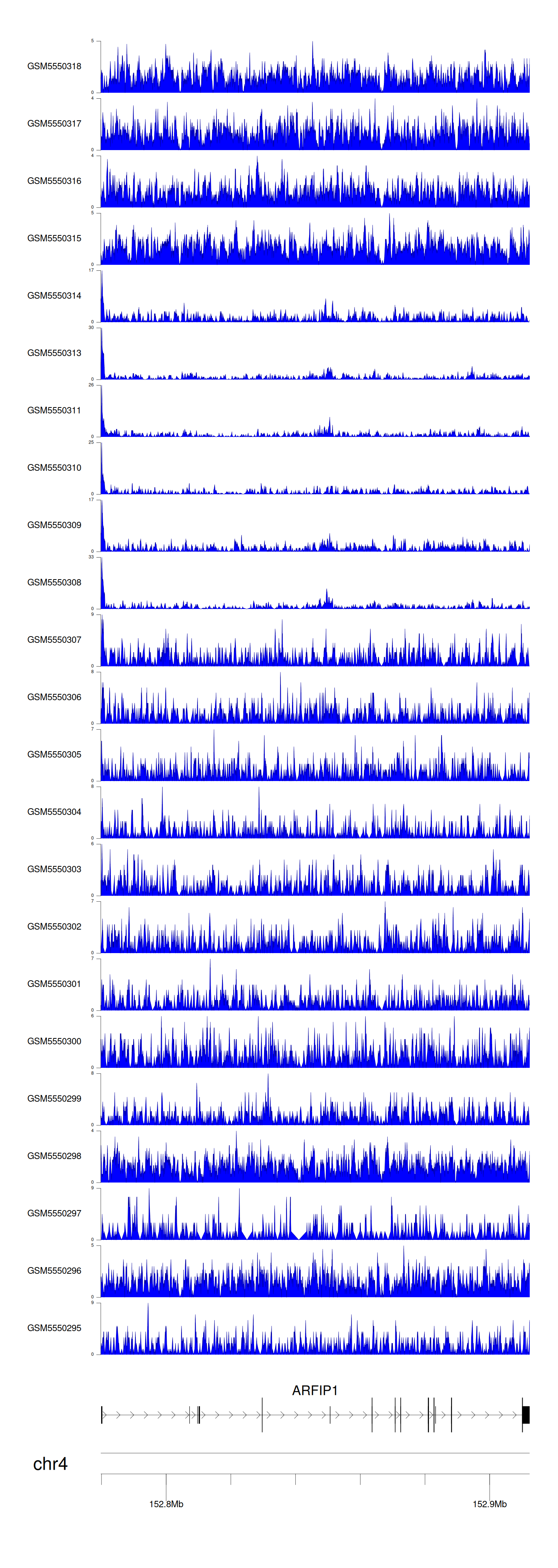 > Dataset: GSE143026 - ARFIP1 peak across samples