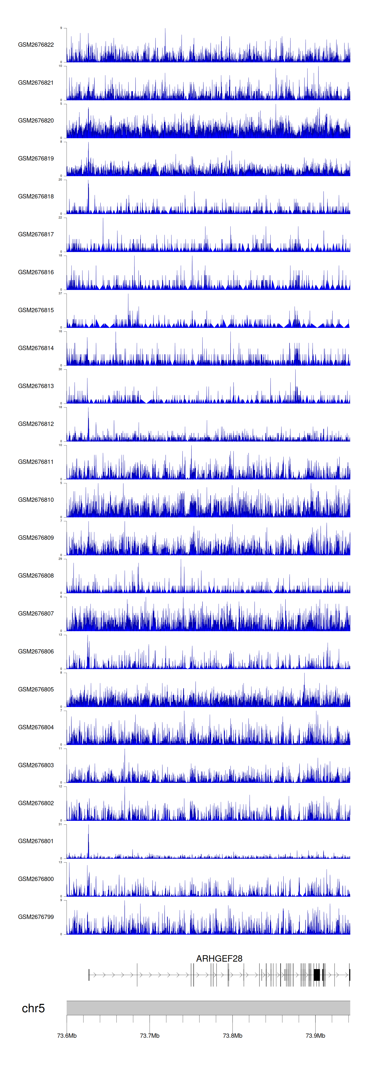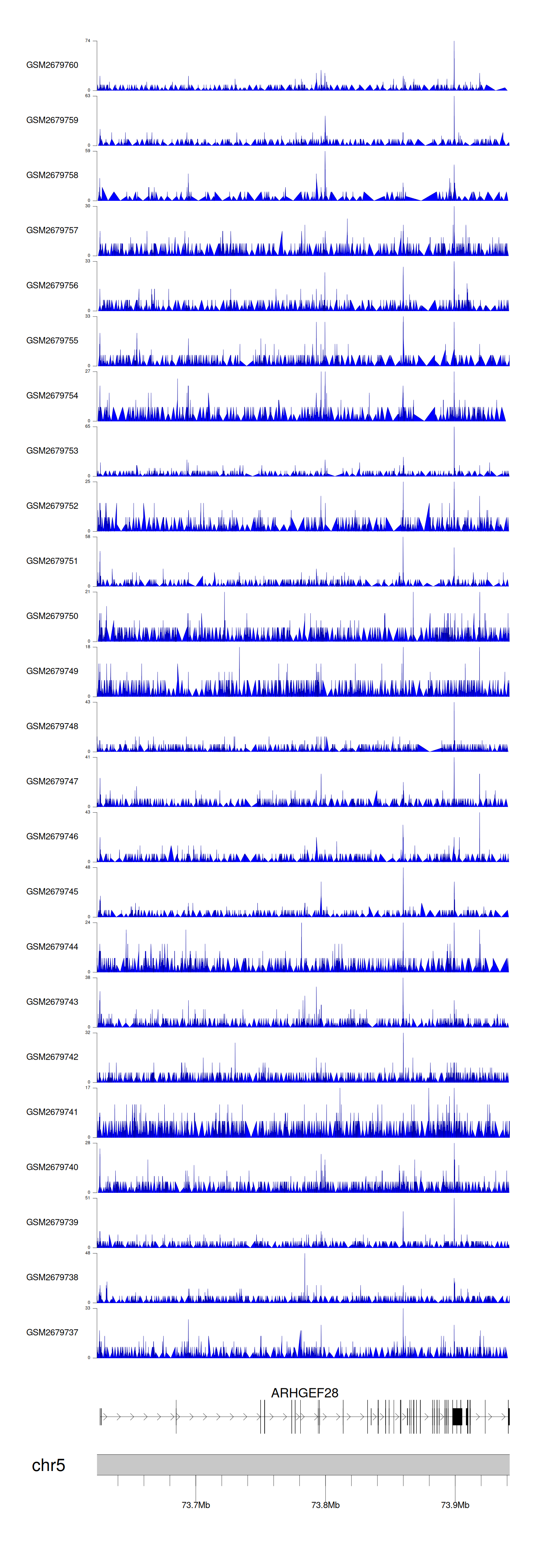 > Dataset: GSE211651 - ARHGEF28 peak across samples