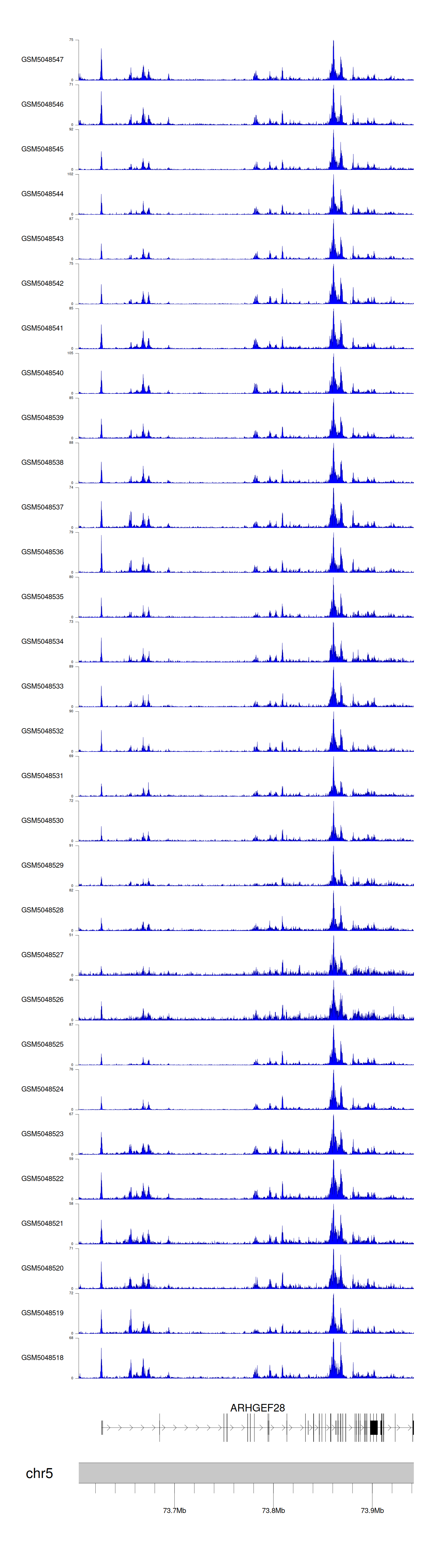 > Dataset: GSE165705 - ARHGEF28 peak across samples