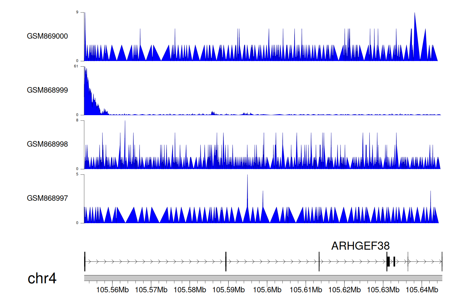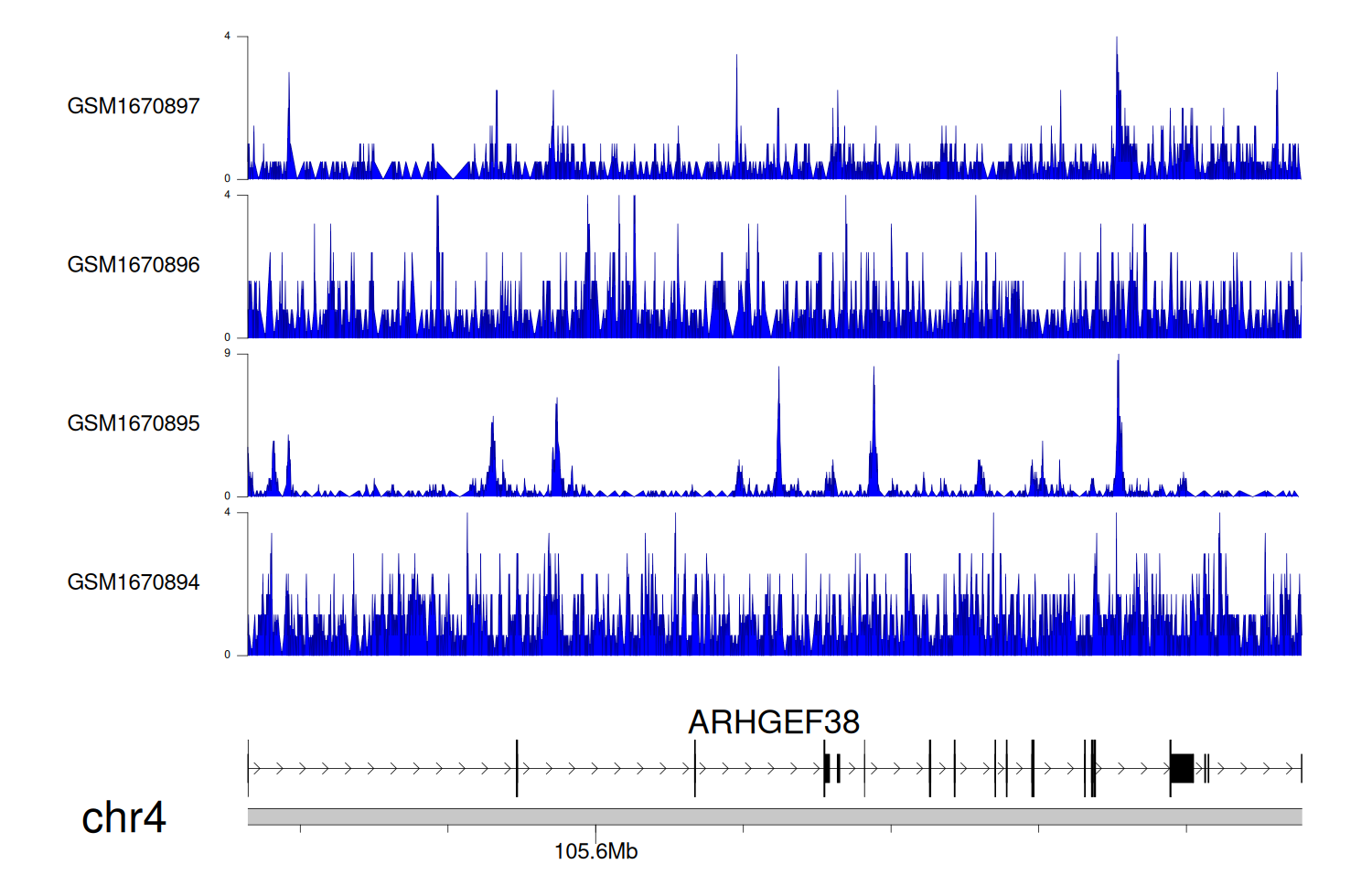 > Dataset: GSE68402 - ARHGEF38 peak across samples