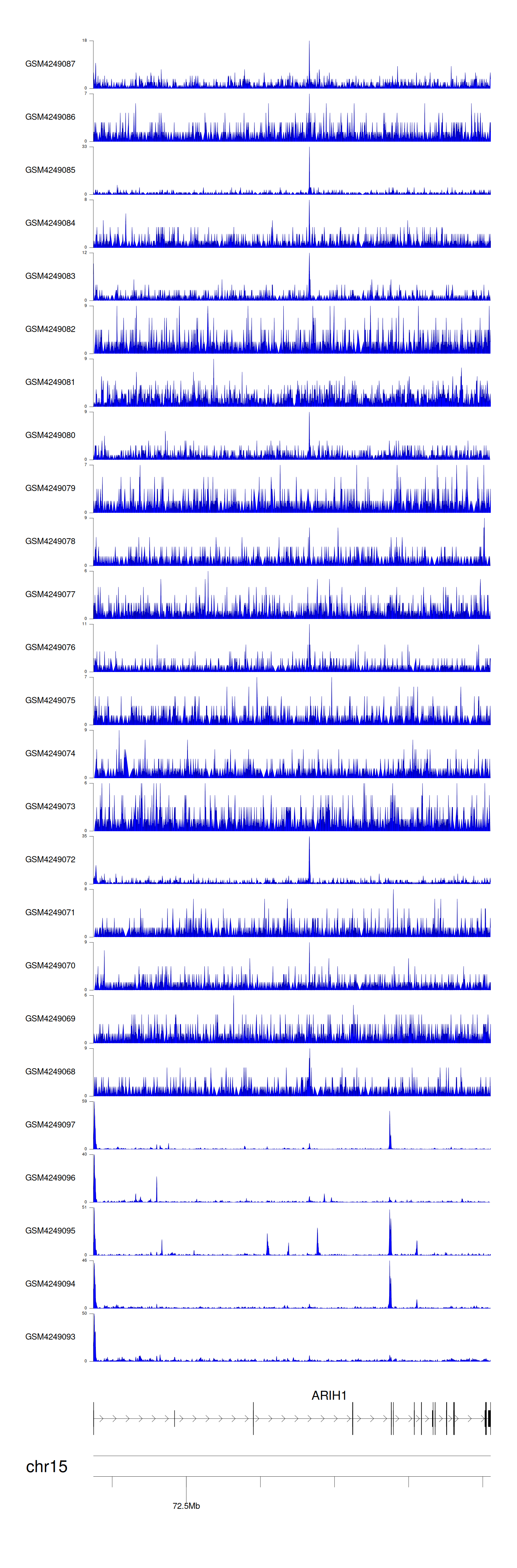 > Dataset: GSE143026 - ARIH1 peak across samples