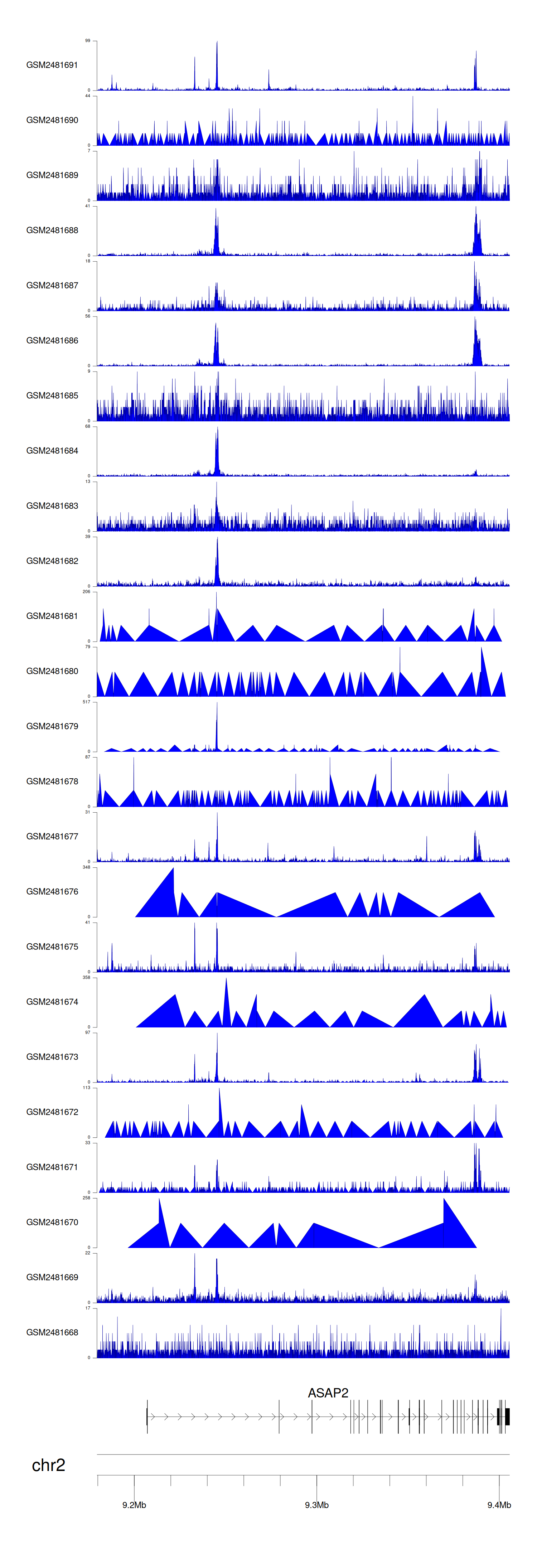 > Dataset: GSE94732 - ASAP2 peak across samples