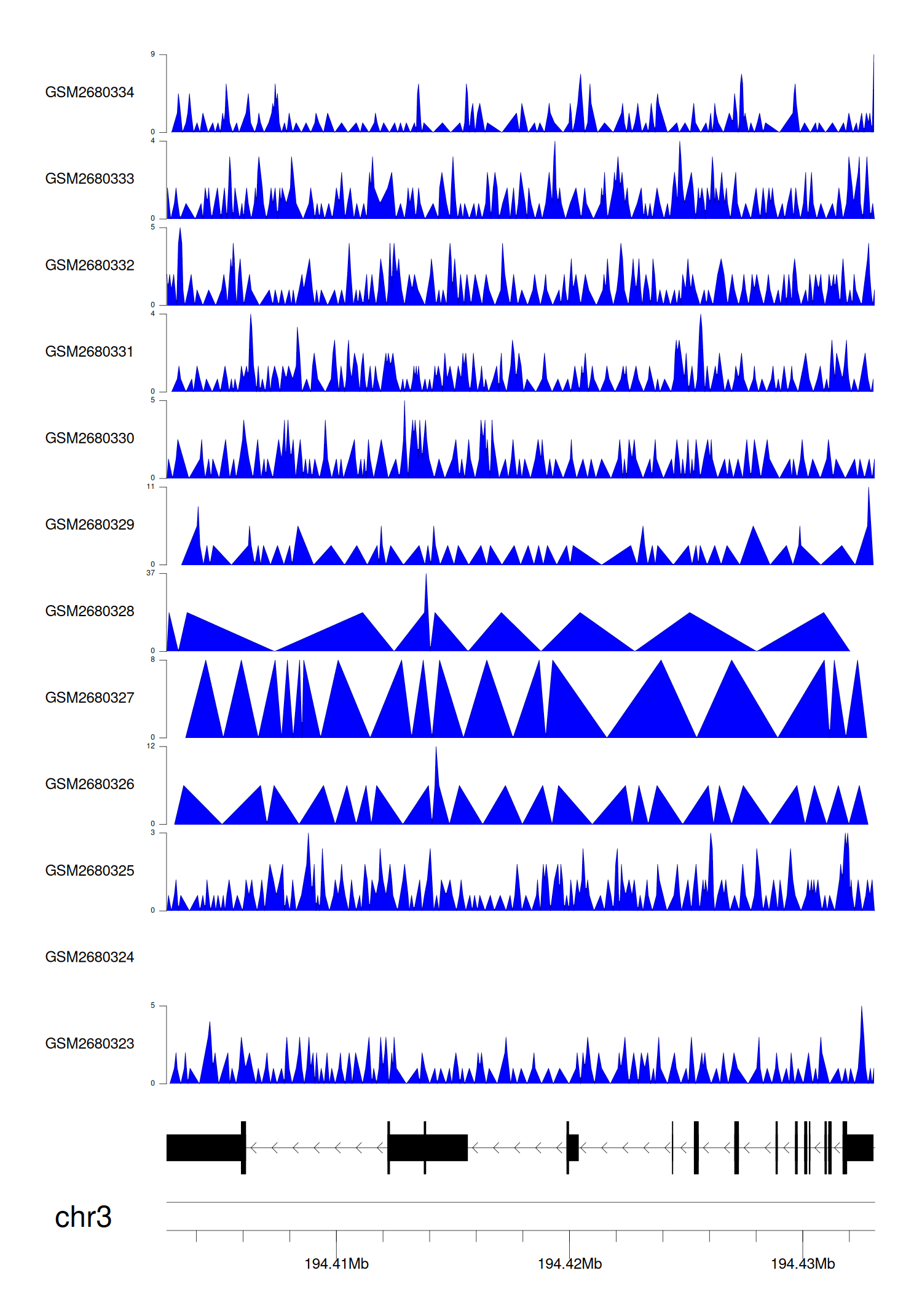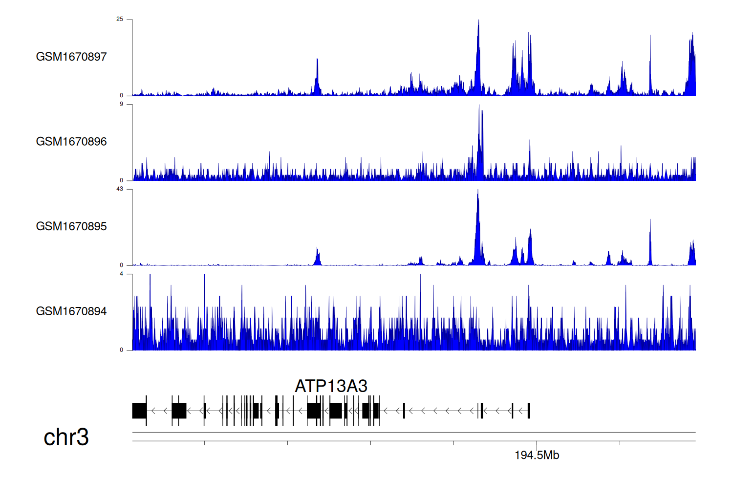 > Dataset: GSE100400 - ATP13A3 peak across samples