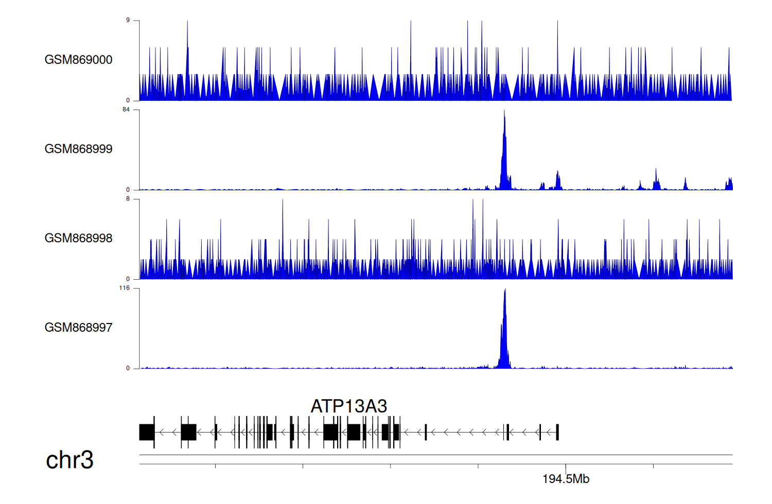 > Dataset: GSE68402 - ATP13A3 peak across samples