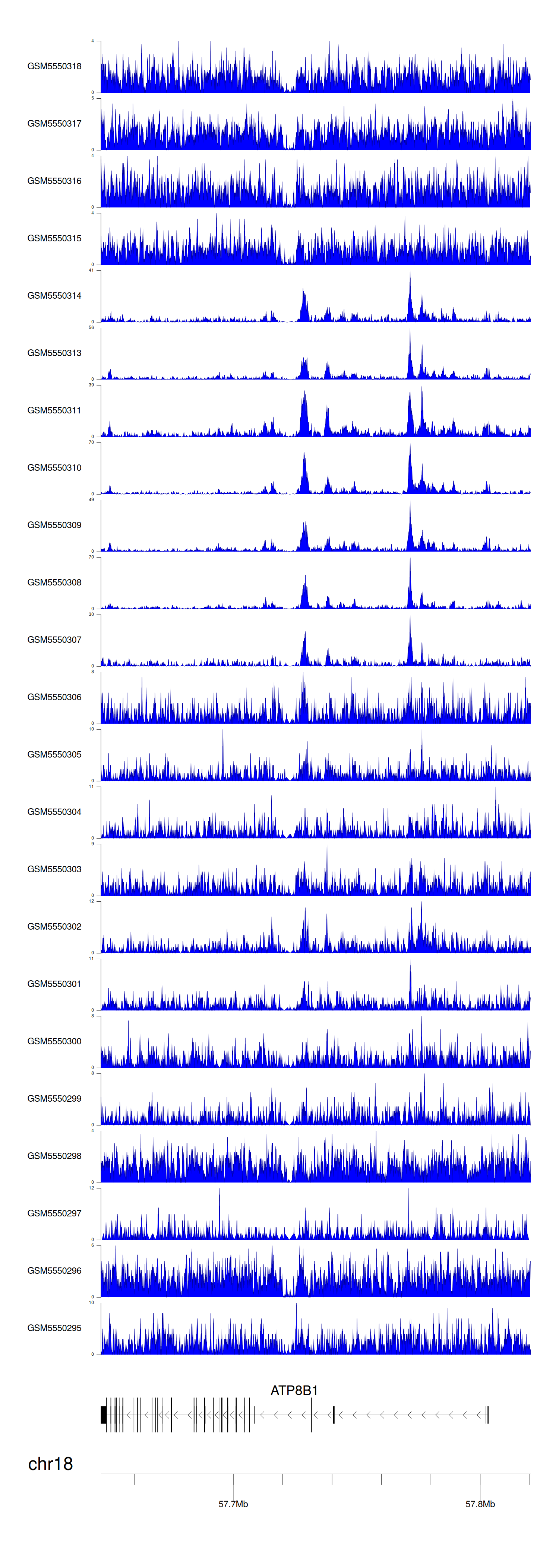 > Dataset: GSE143026 - ATP8B1 peak across samples