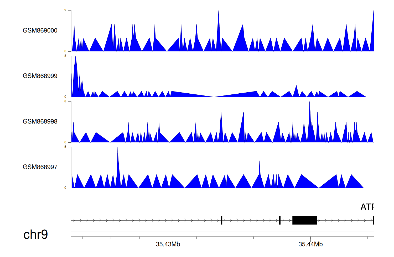 > Dataset: GSE35465 - ATP8B5P peak across samples