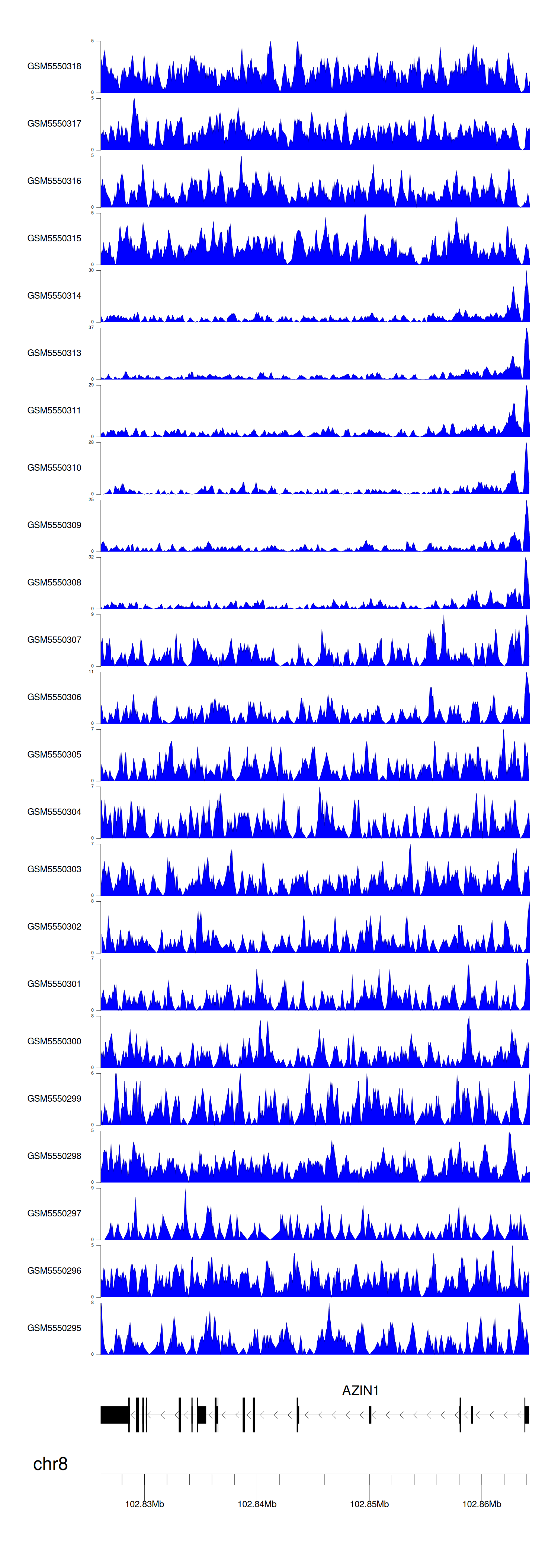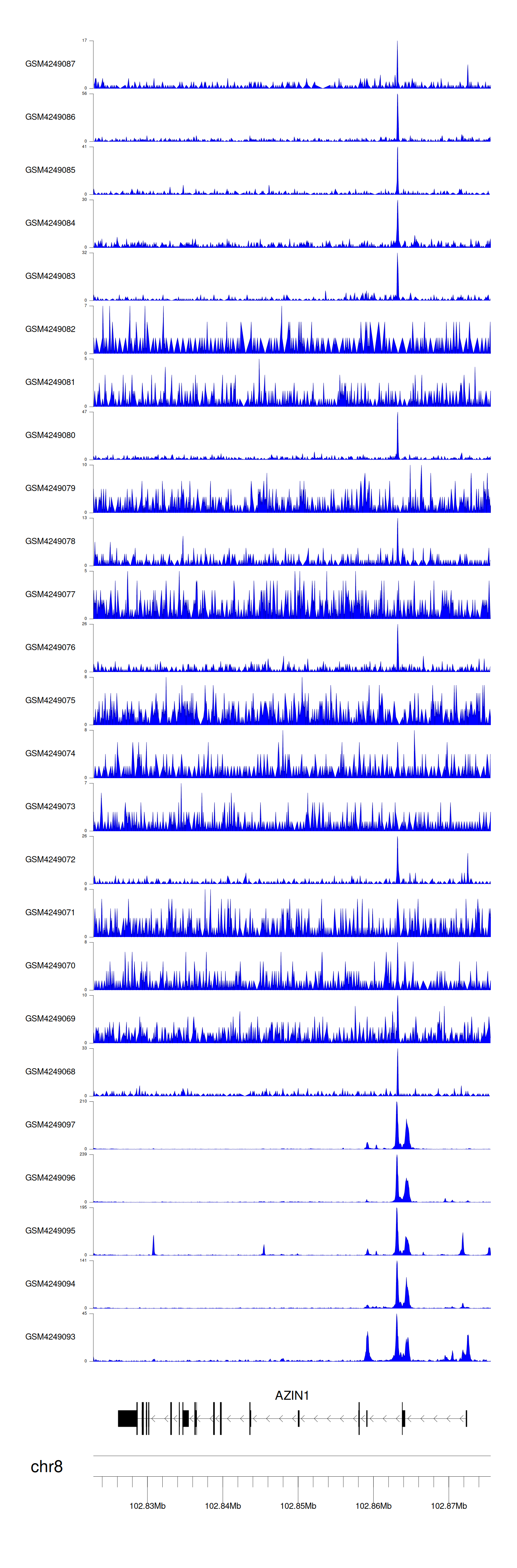 > Dataset: GSE143026 - AZIN1 peak across samples