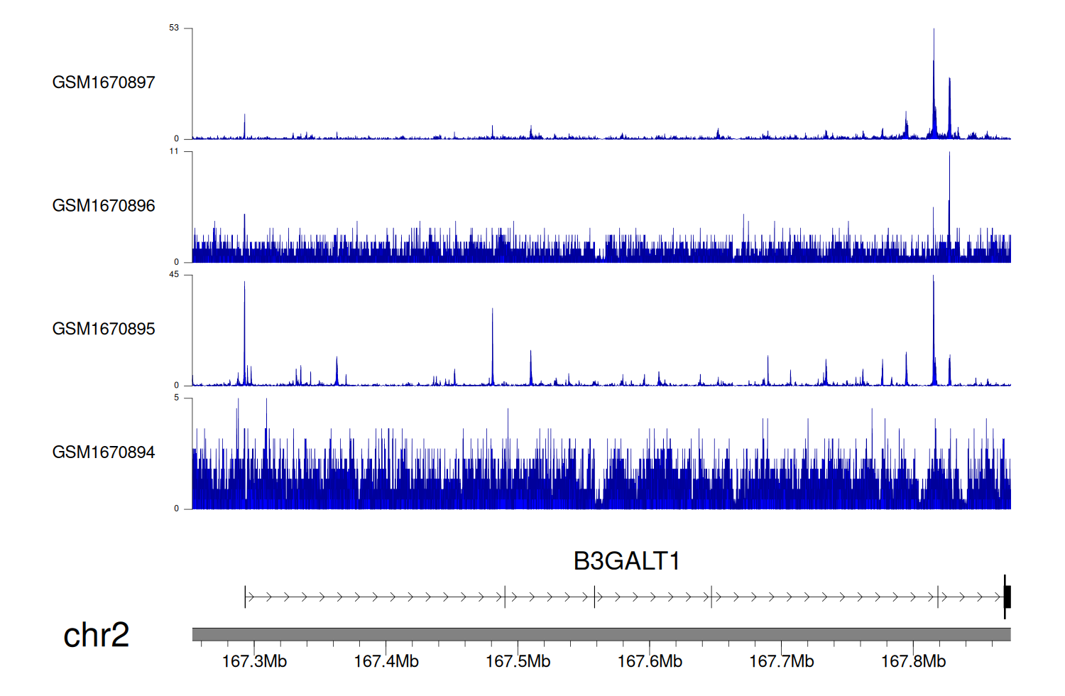 > Dataset: GSE68402 - B3GALT1 peak across samples