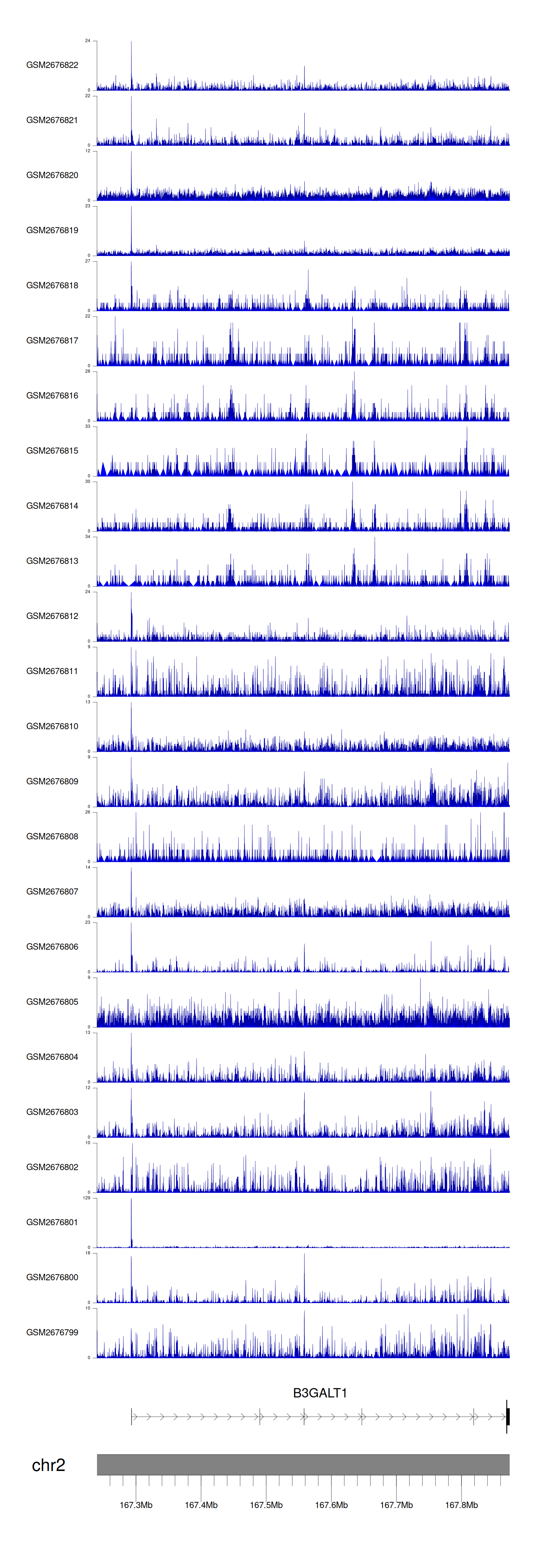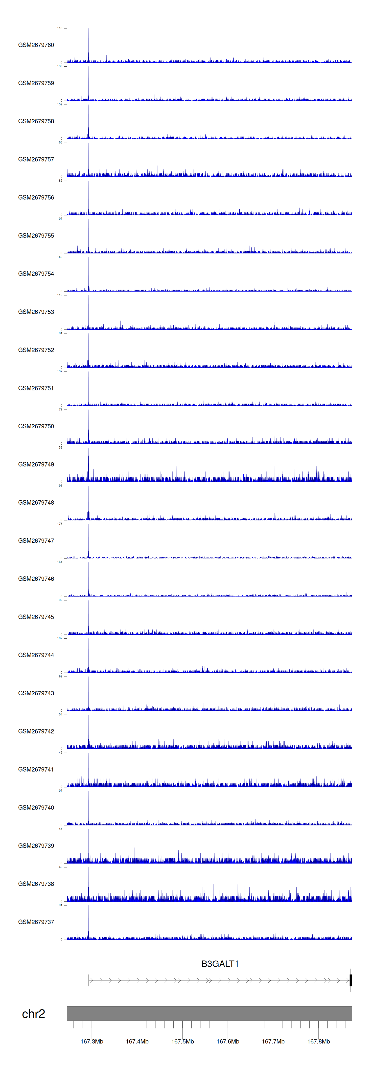 > Dataset: GSE100376 - B3GALT1 peak across samples