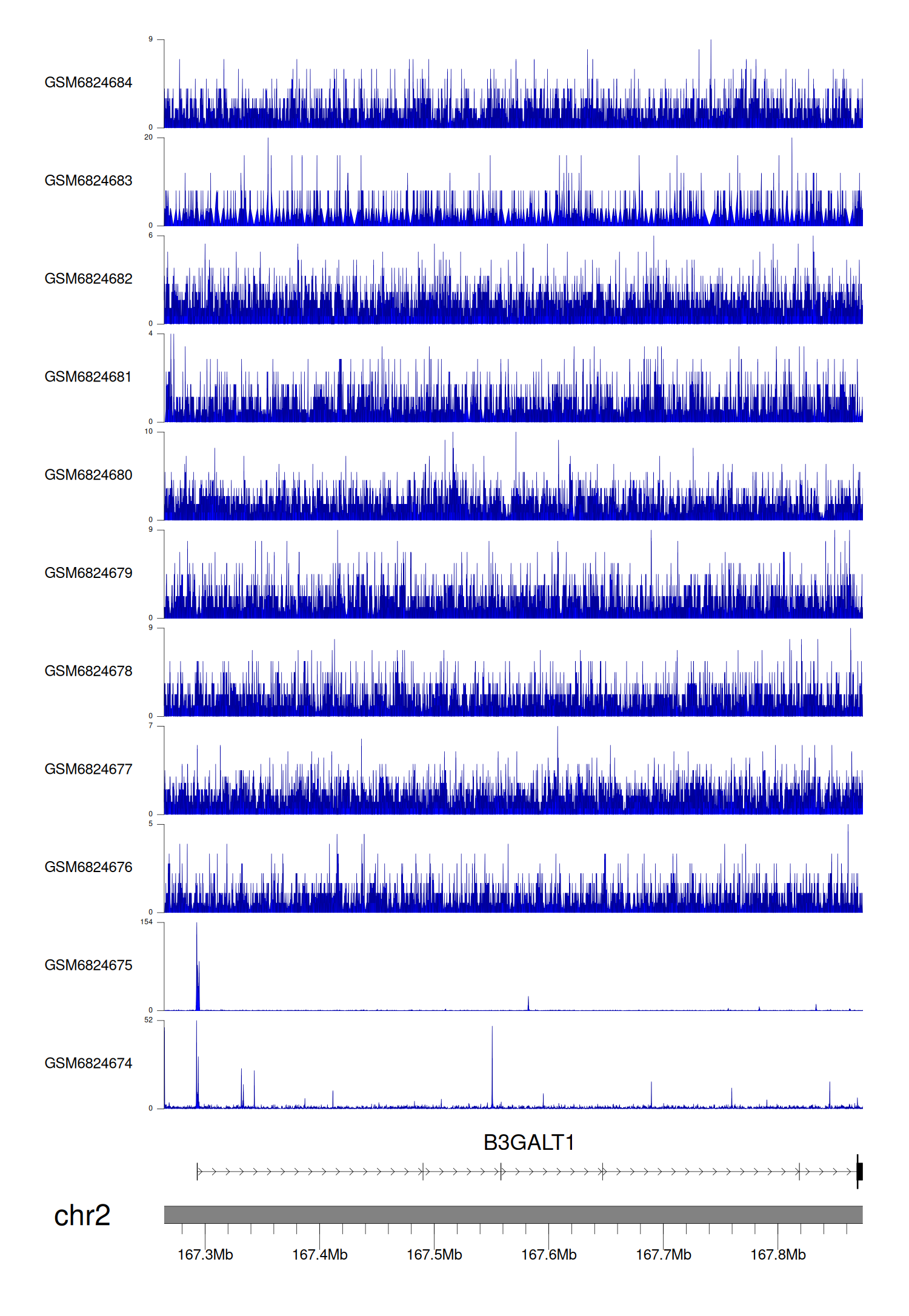 > Dataset: GSE165703 - B3GALT1 peak across samples