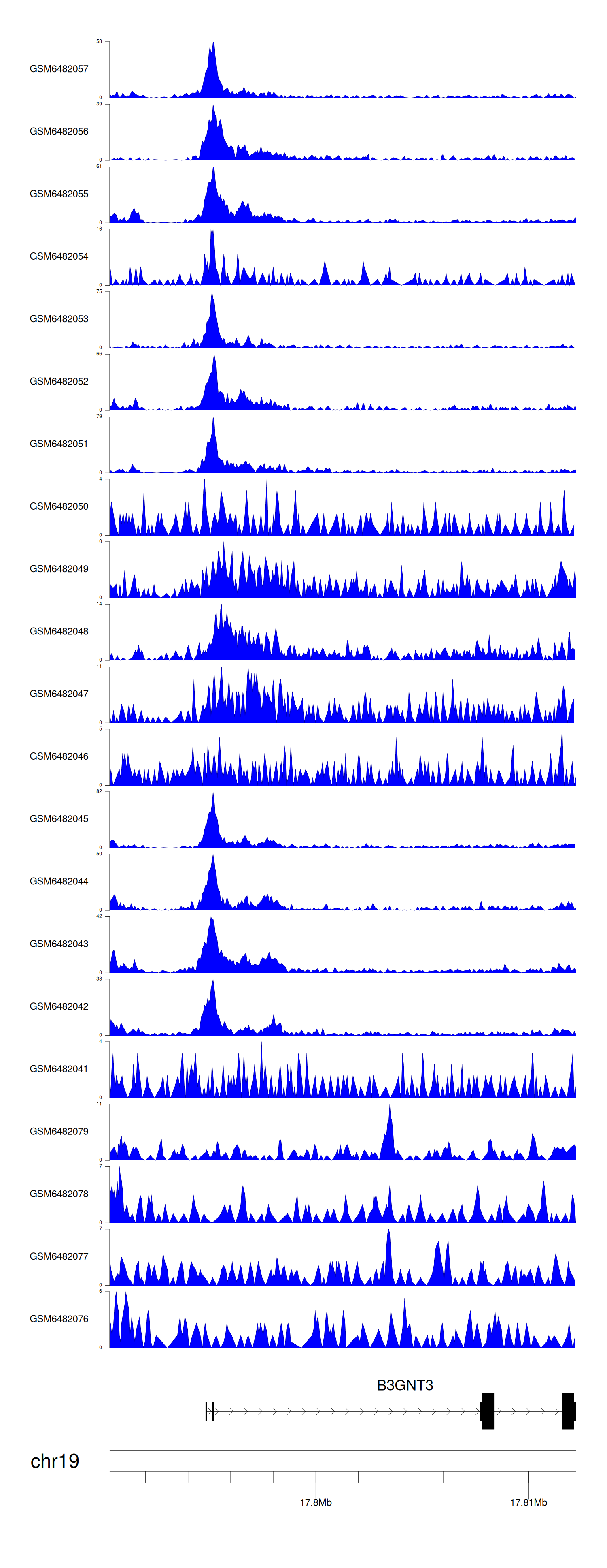 > Dataset: GSE211651 - B3GNT3 peak across samples