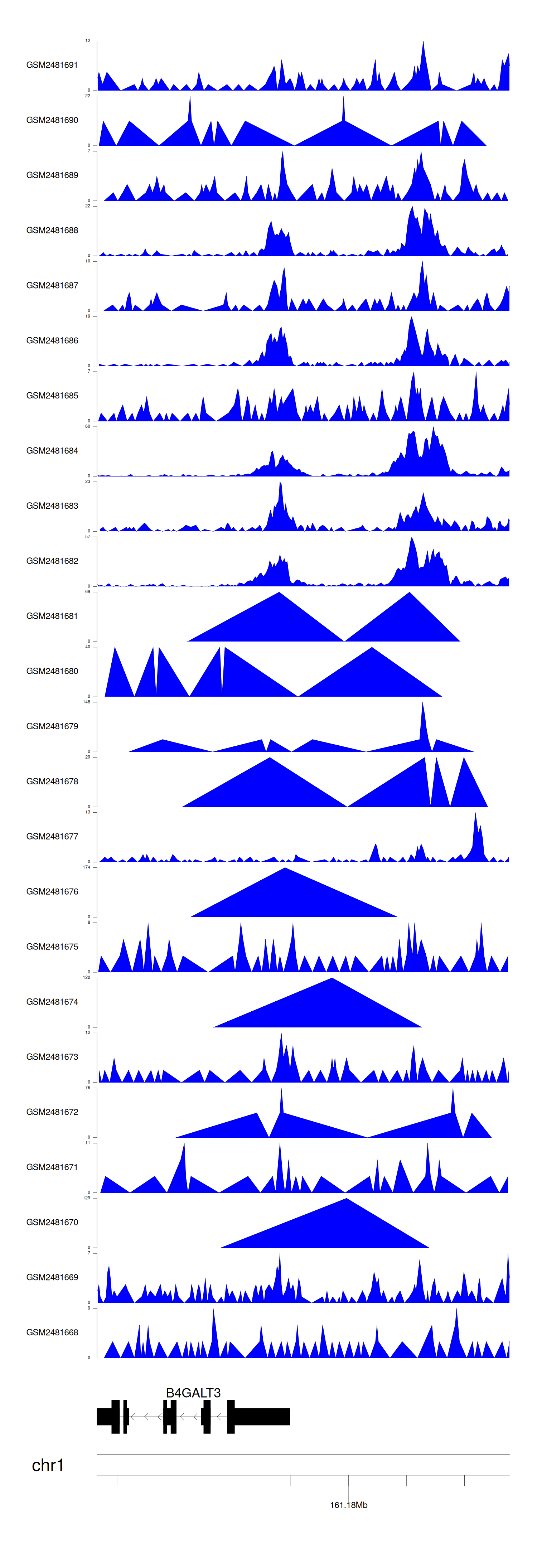 > Dataset: GSE94732 - B4GALT3 peak across samples