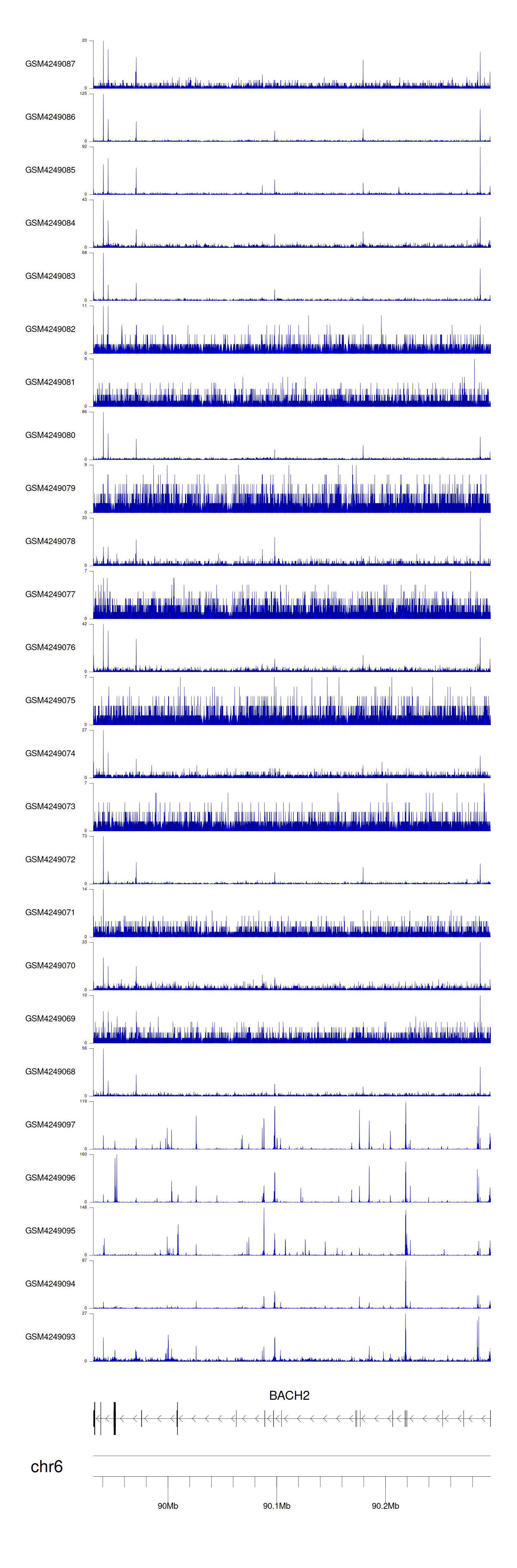 > Dataset: GSE143026 - BACH2 peak across samples