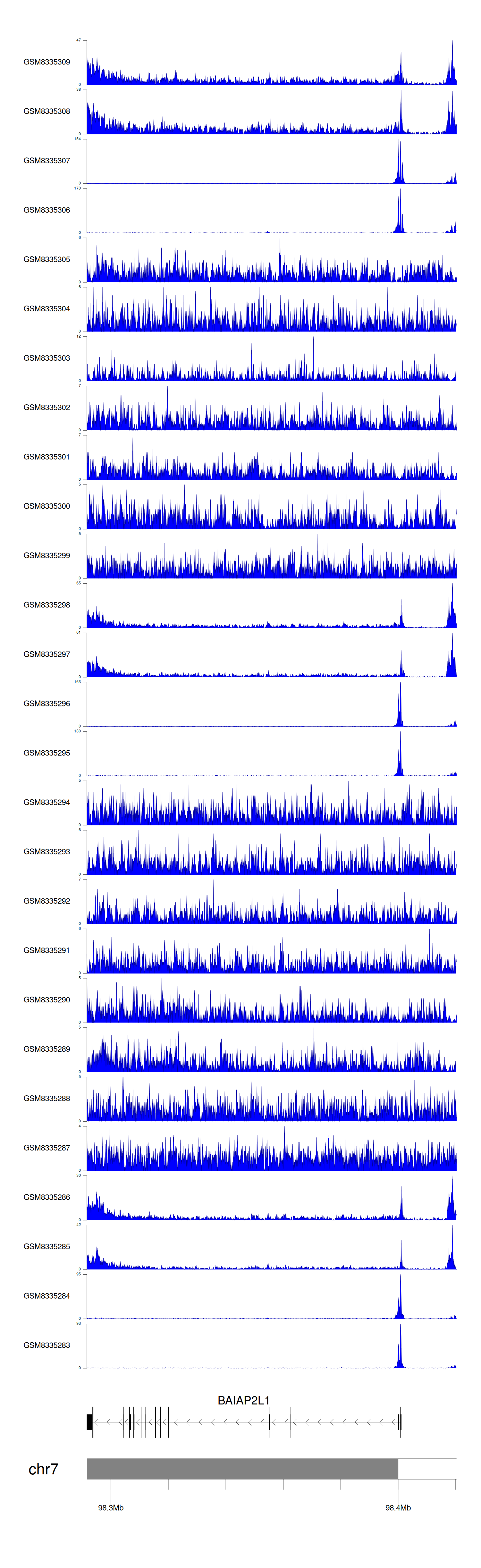 > Dataset: GSE270130 - BAIAP2L1 peak across samples