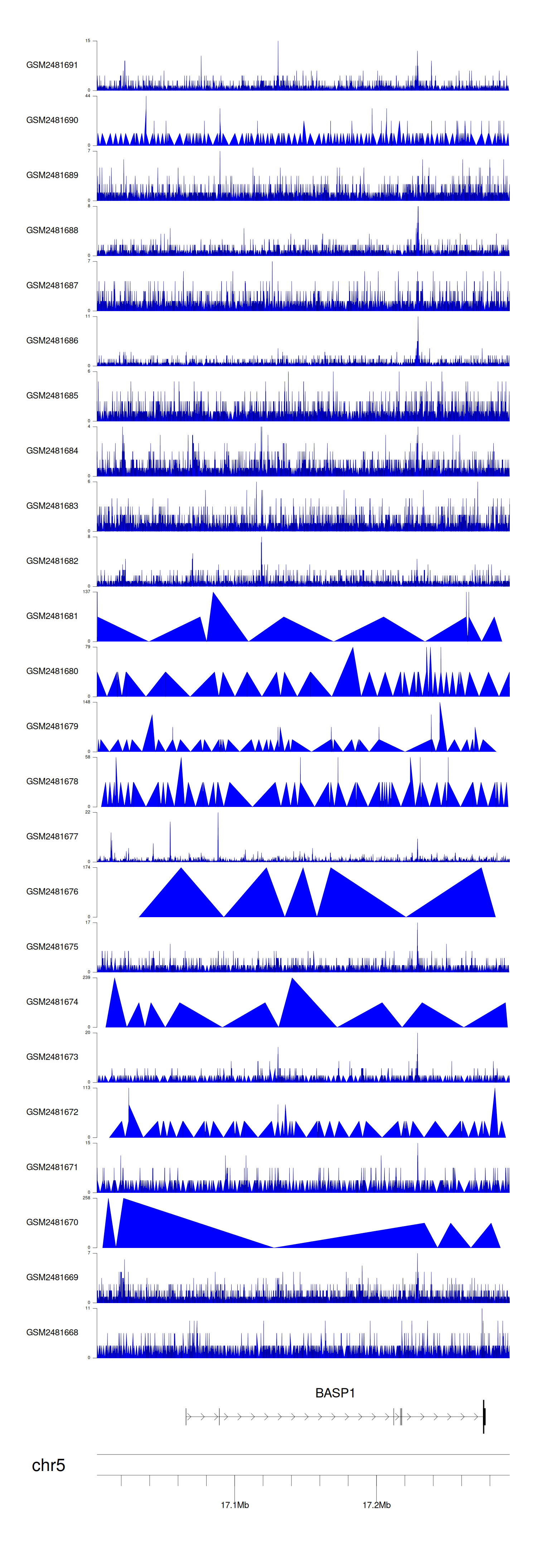 > Dataset: GSE94732 - BASP1 peak across samples
