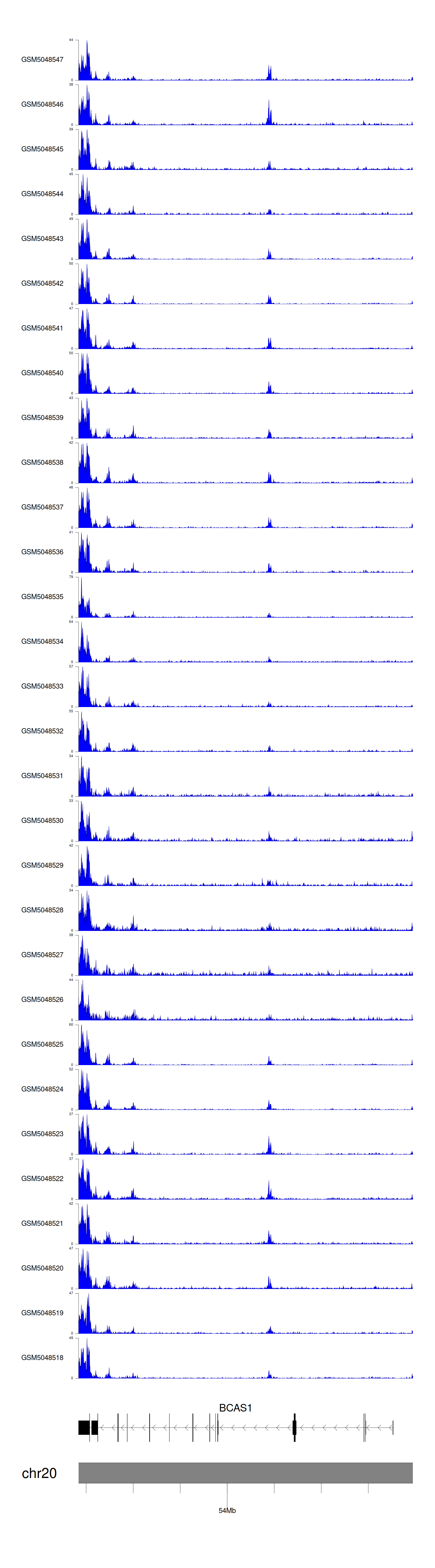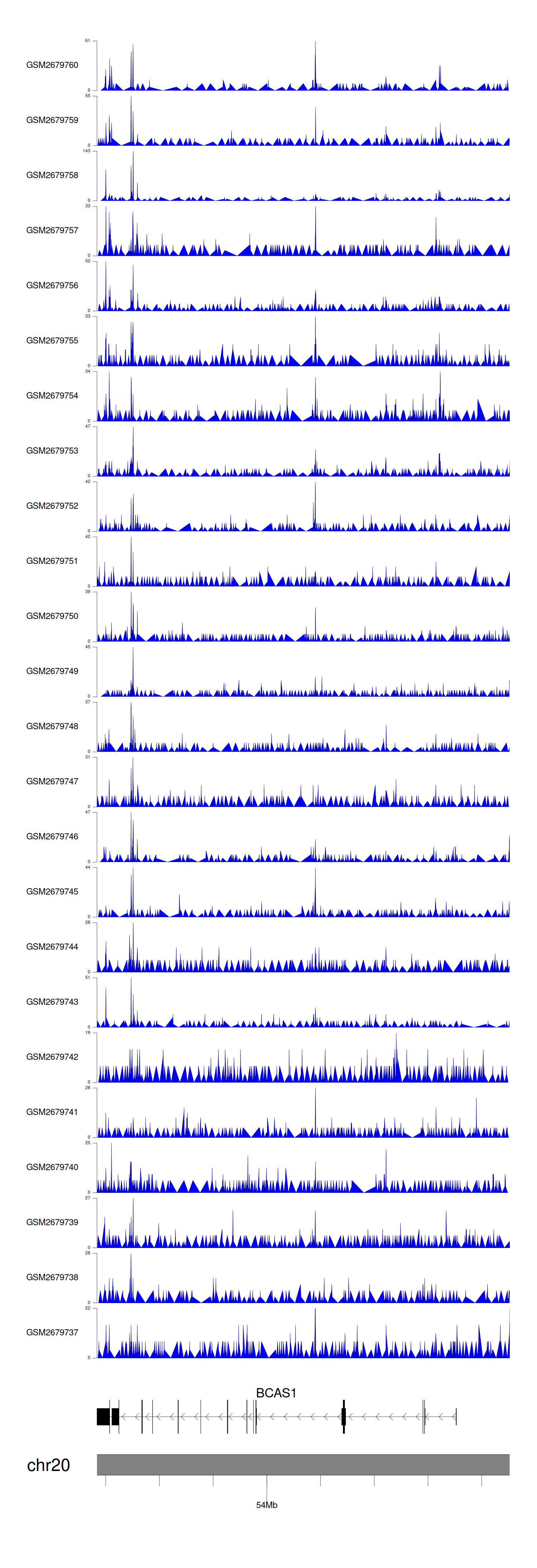 > Dataset: GSE30738 - BCAS1 peak across samples