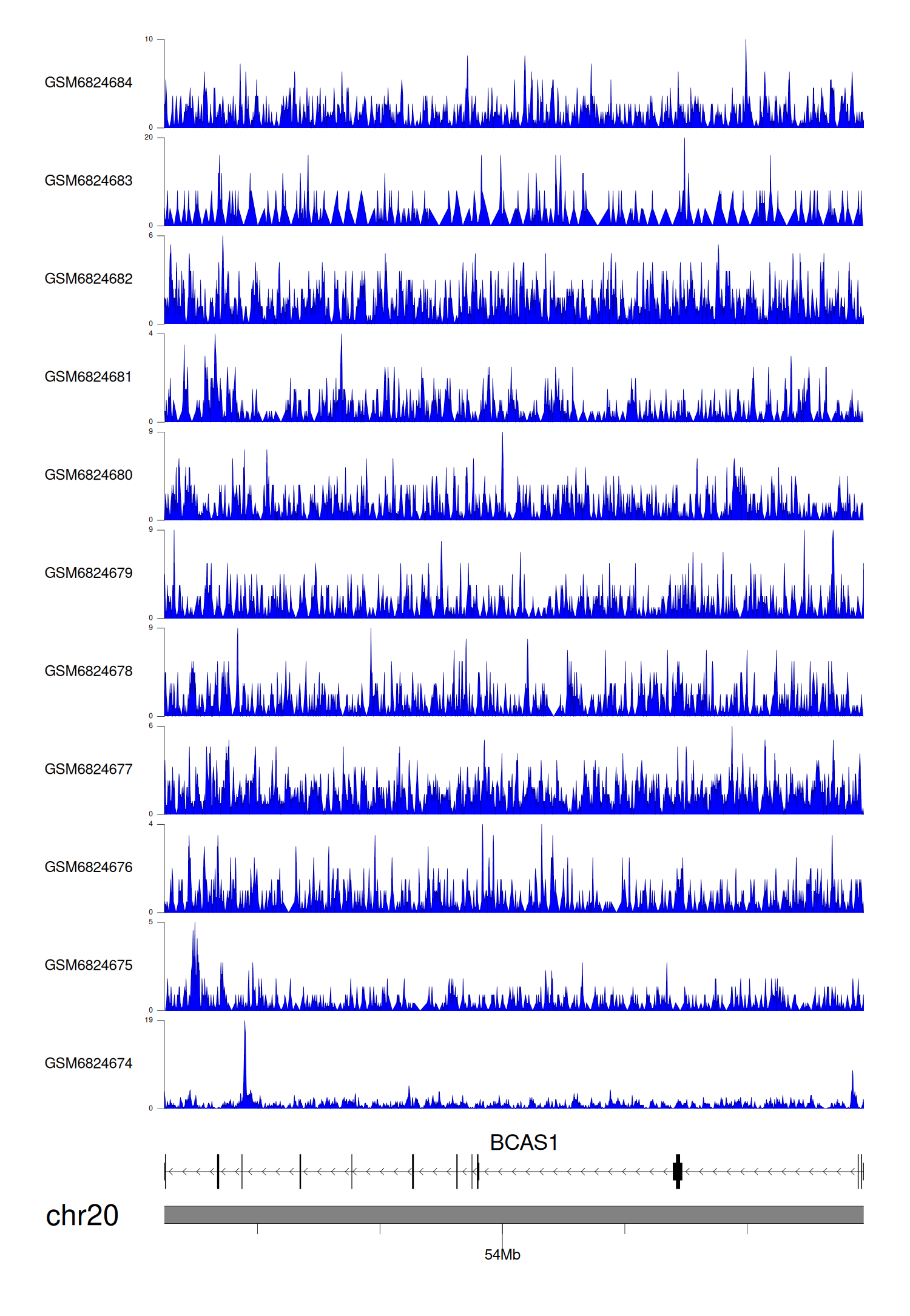 > Dataset: GSE144329 - BCAS1 peak across samples