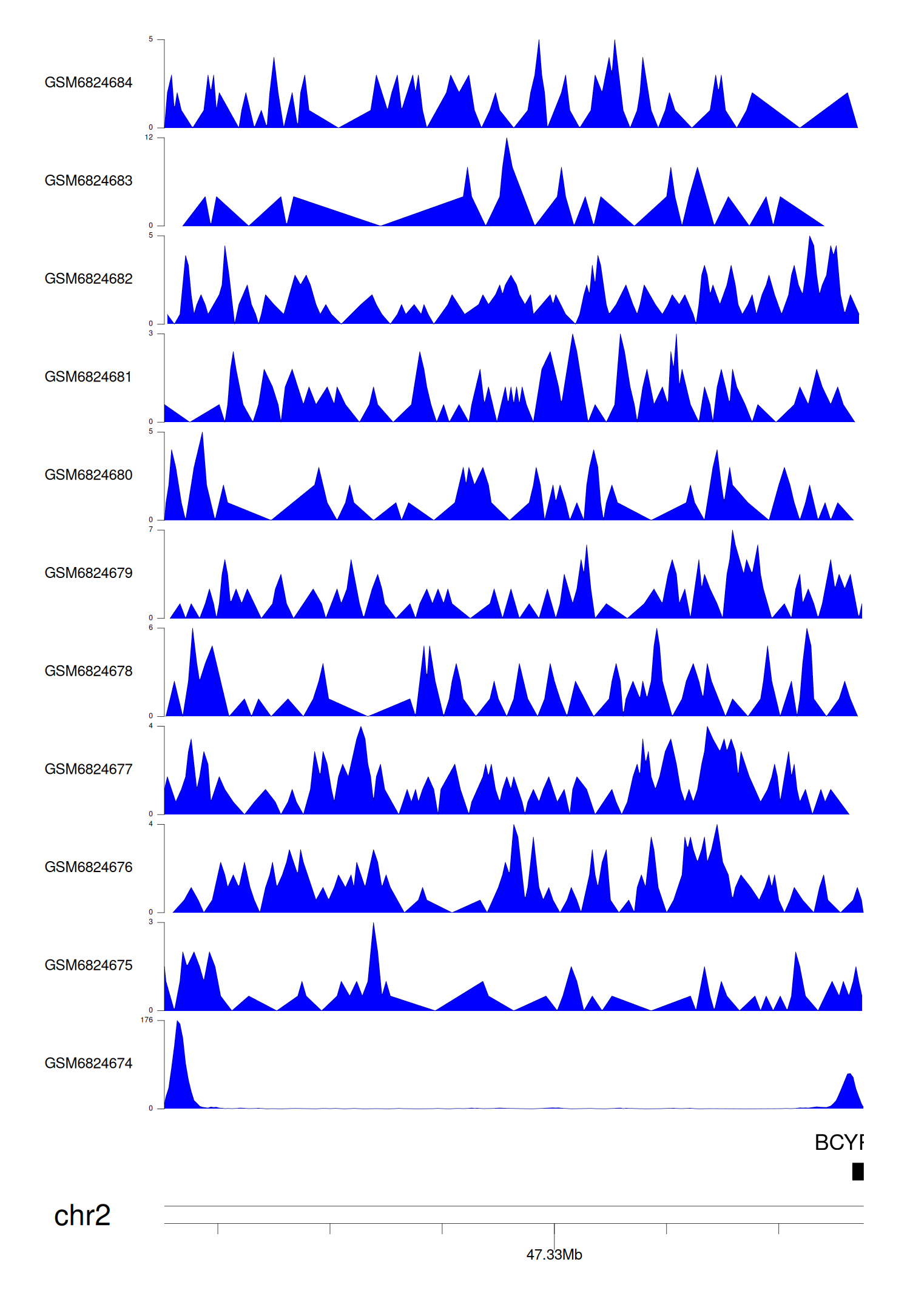 > Dataset: GSE211651 - BCYRN1 peak across samples