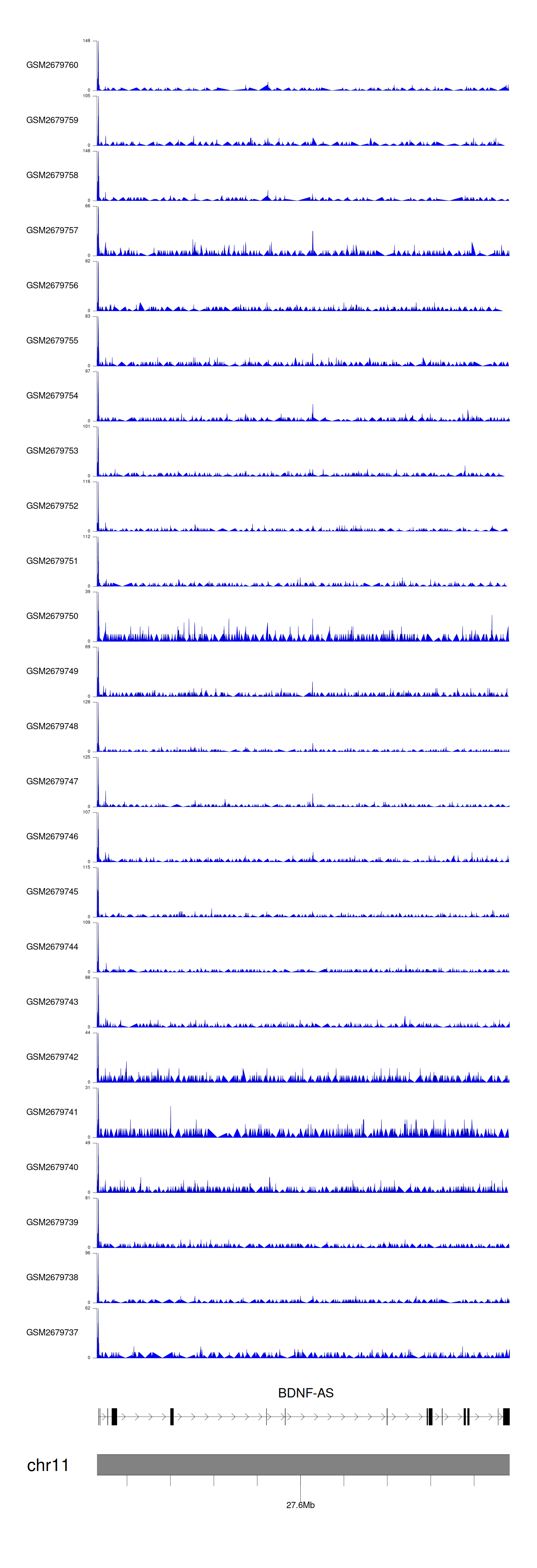 > Dataset: GSE30738 - BDNF-AS peak across samples