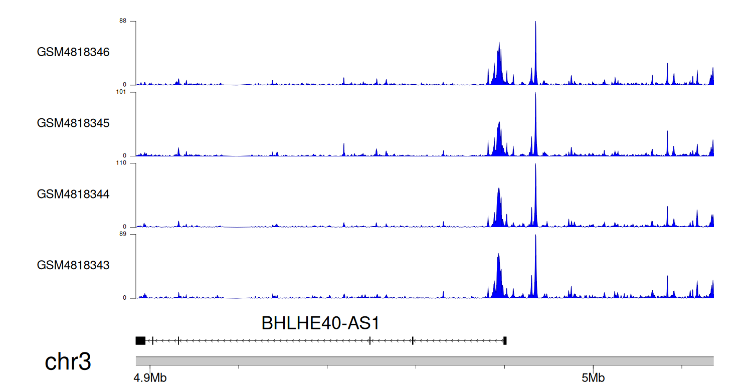 > Dataset: GSE270130 - BHLHE40-AS1 peak across samples