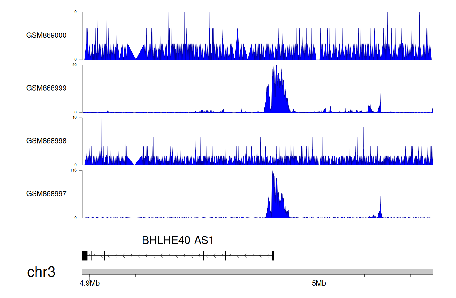 > Dataset: GSE131257 - BHLHE40-AS1 peak across samples