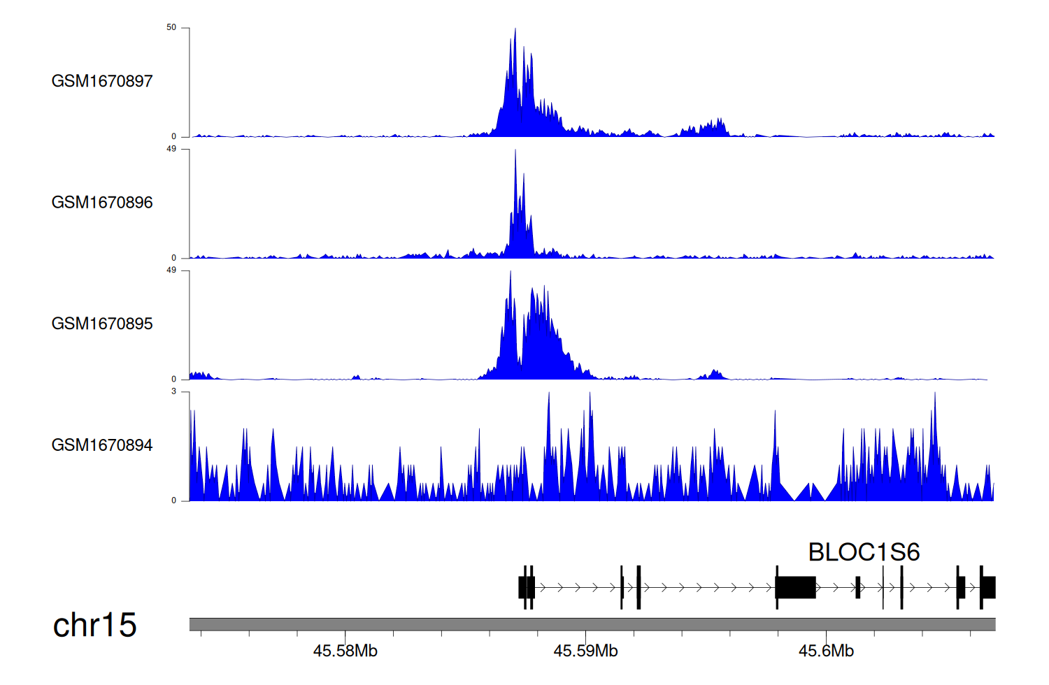 > Dataset: GSE64877 - BLOC1S6 peak across samples