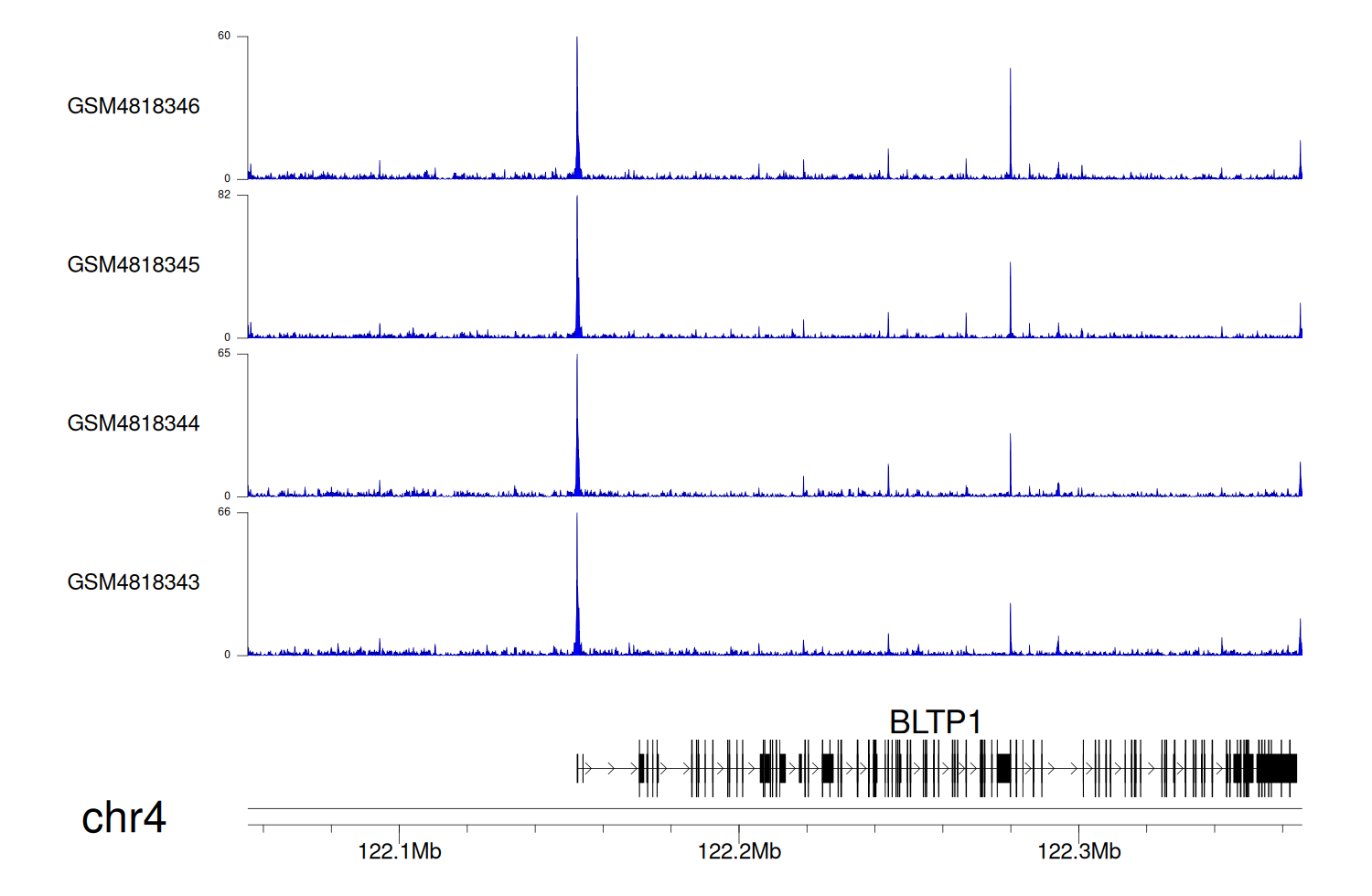 > Dataset: GSE131257 - BLTP1 peak across samples