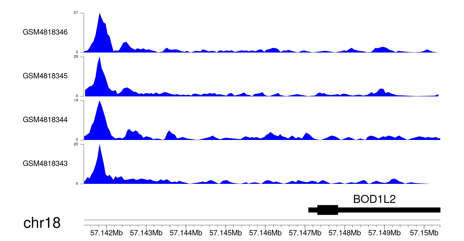 > Dataset: GSE131257 - BOD1L2 peak across samples
