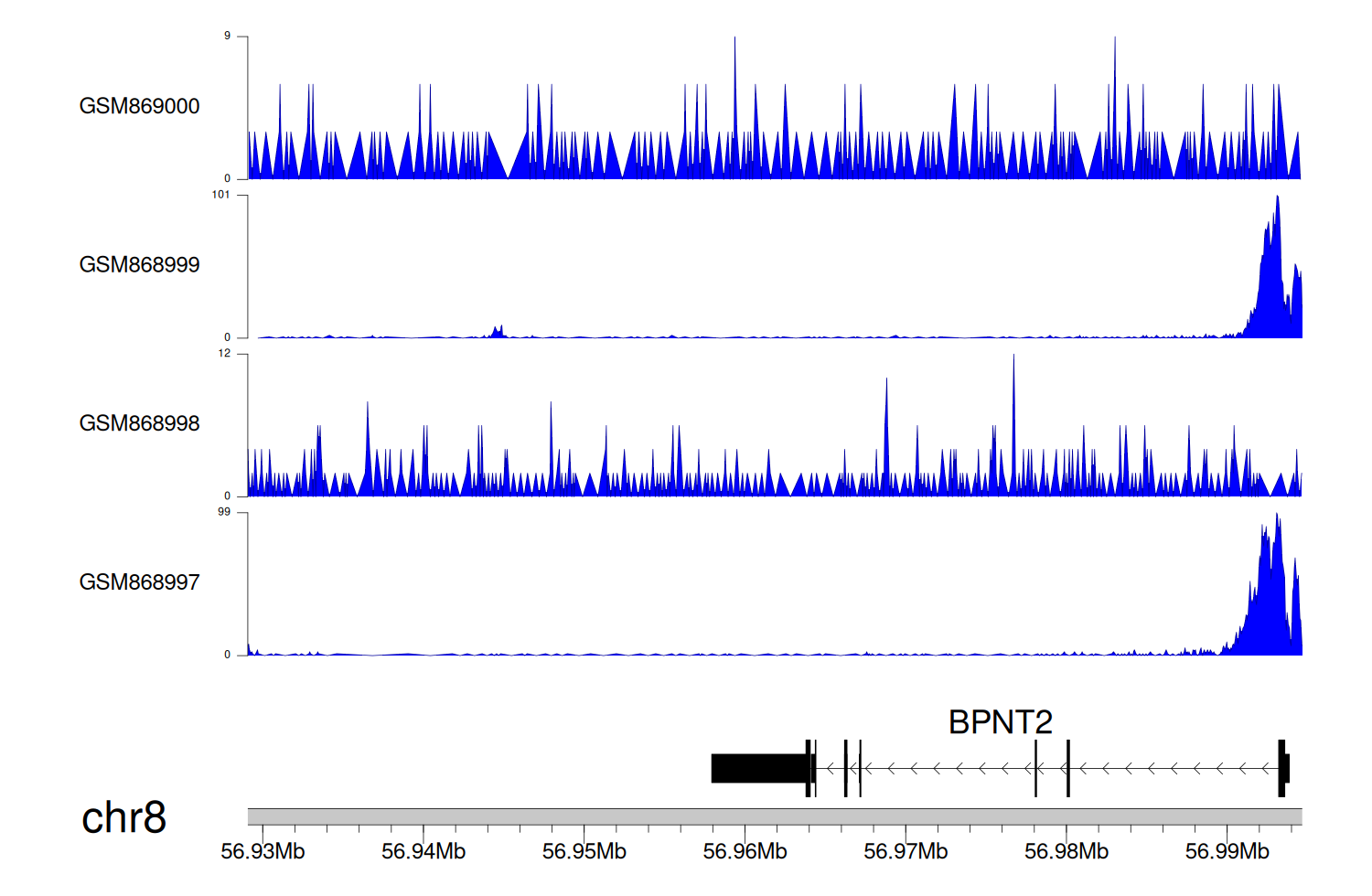 > Dataset: GSE100400 - BPNT2 peak across samples