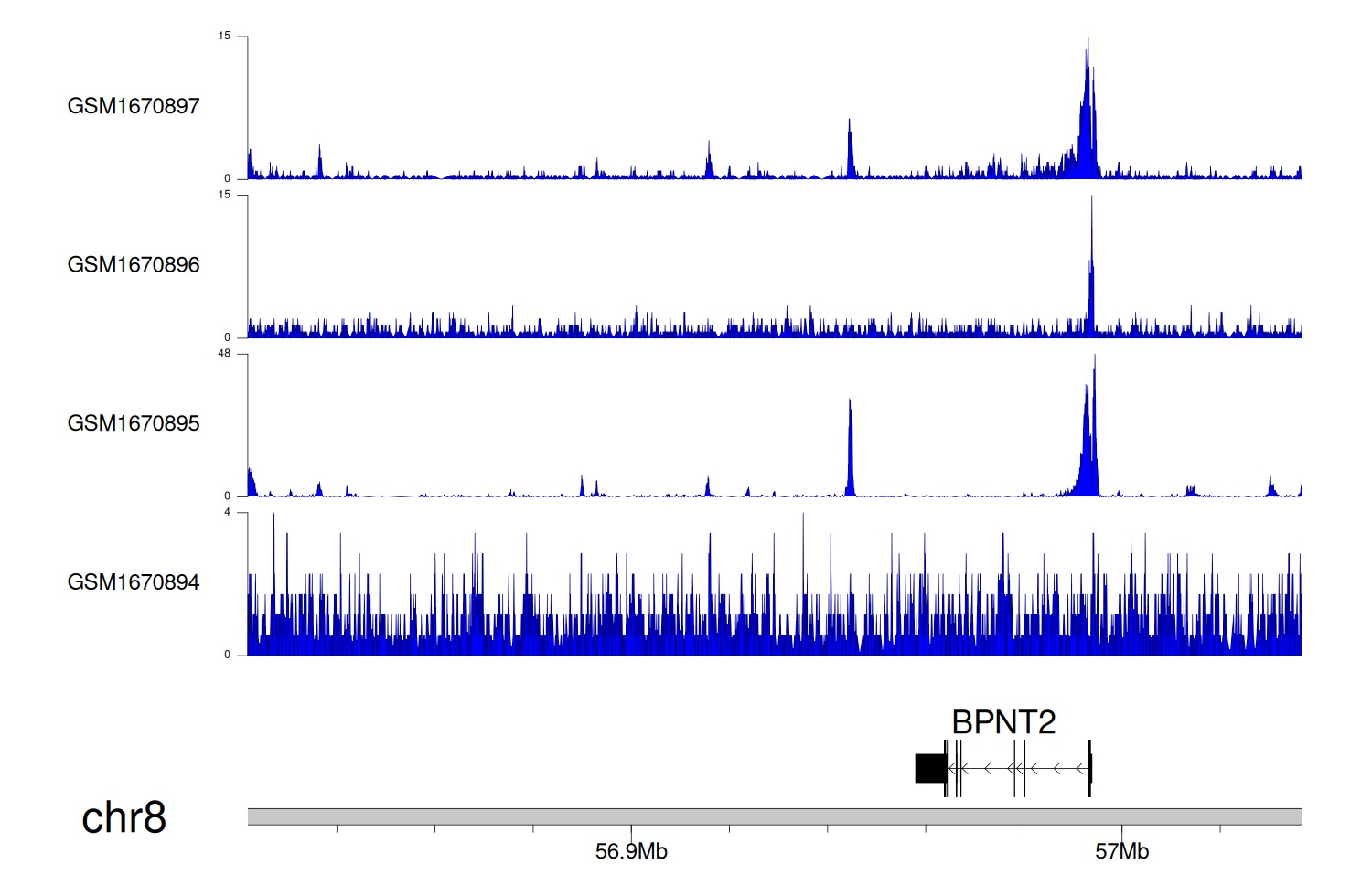 > Dataset: GSE68402 - BPNT2 peak across samples