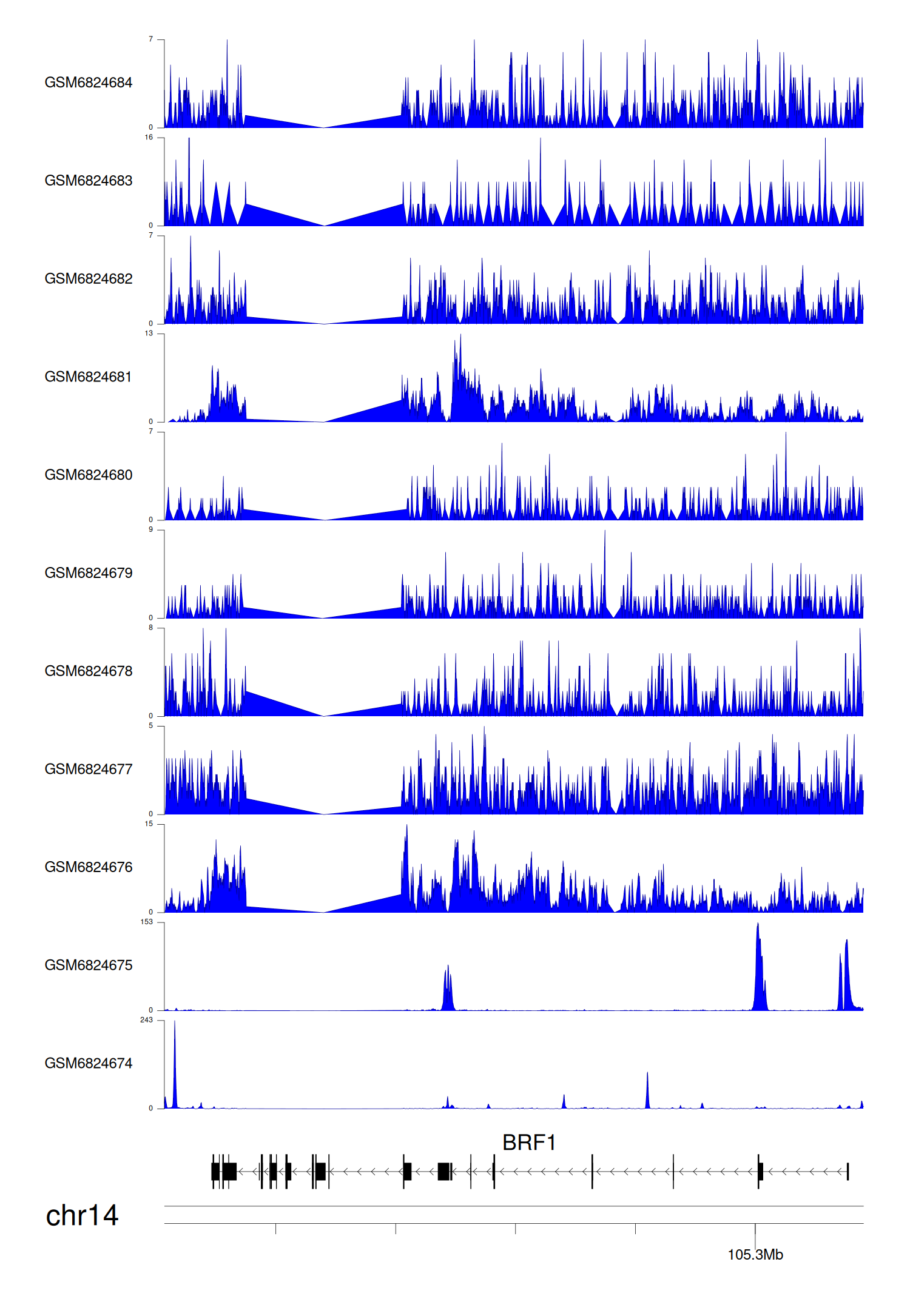> Dataset: GSE144329 - BRF1 peak across samples