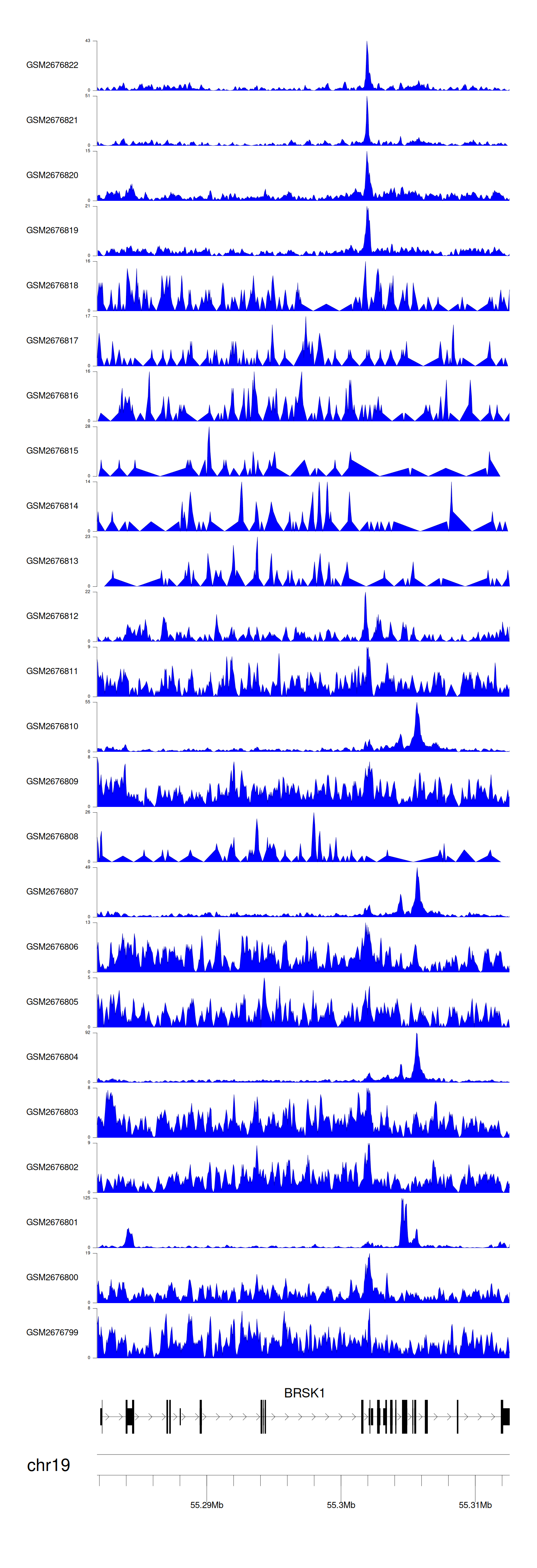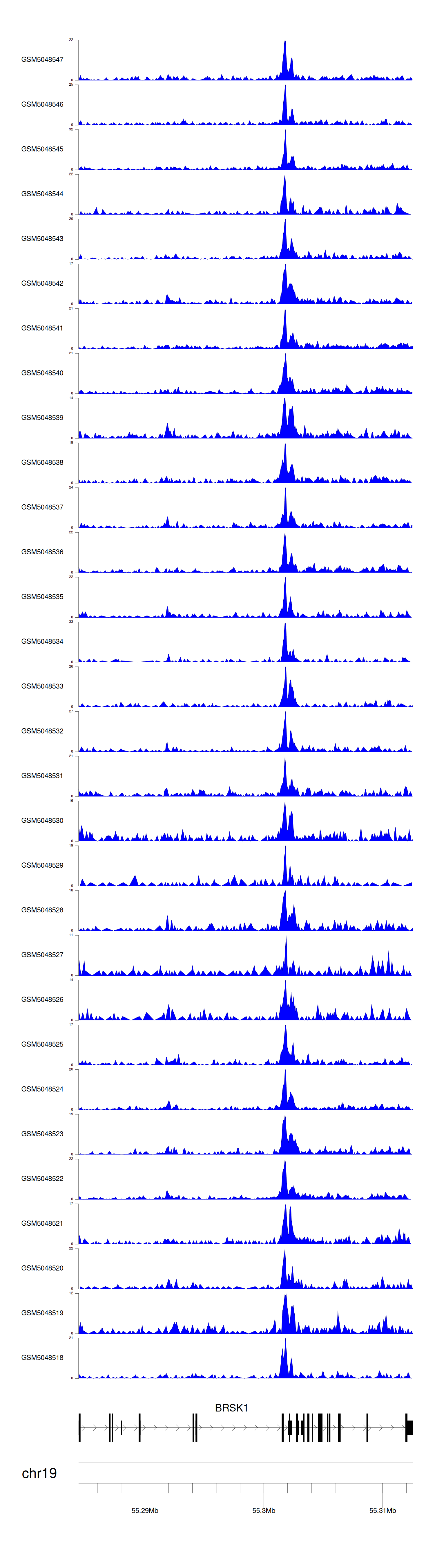> Dataset: GSE30738 - BRSK1 peak across samples