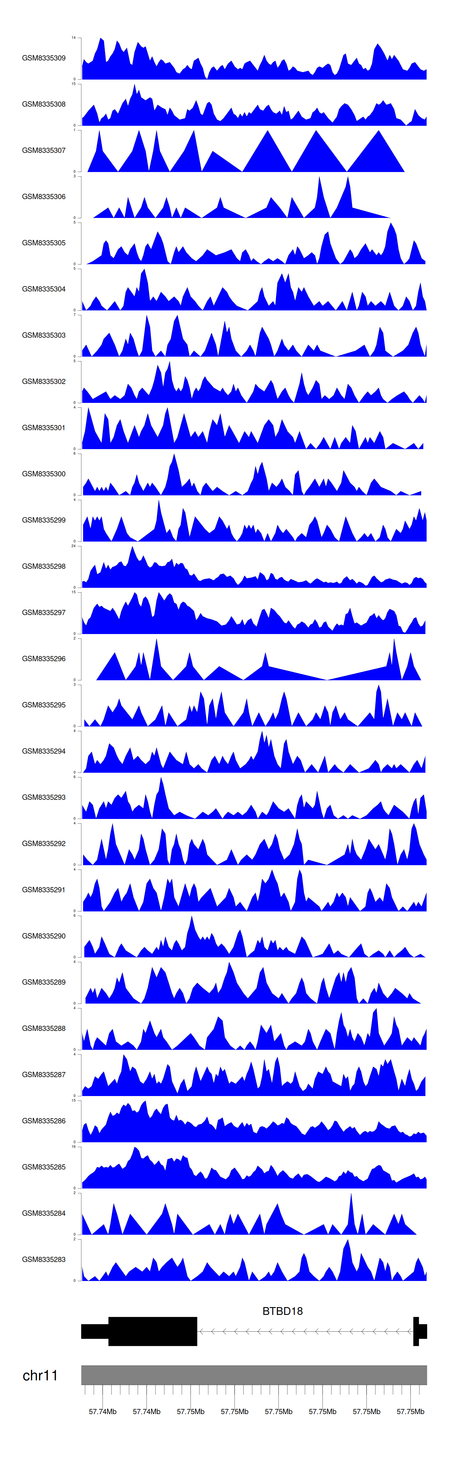 > Dataset: GSE270130 - BTBD18 peak across samples